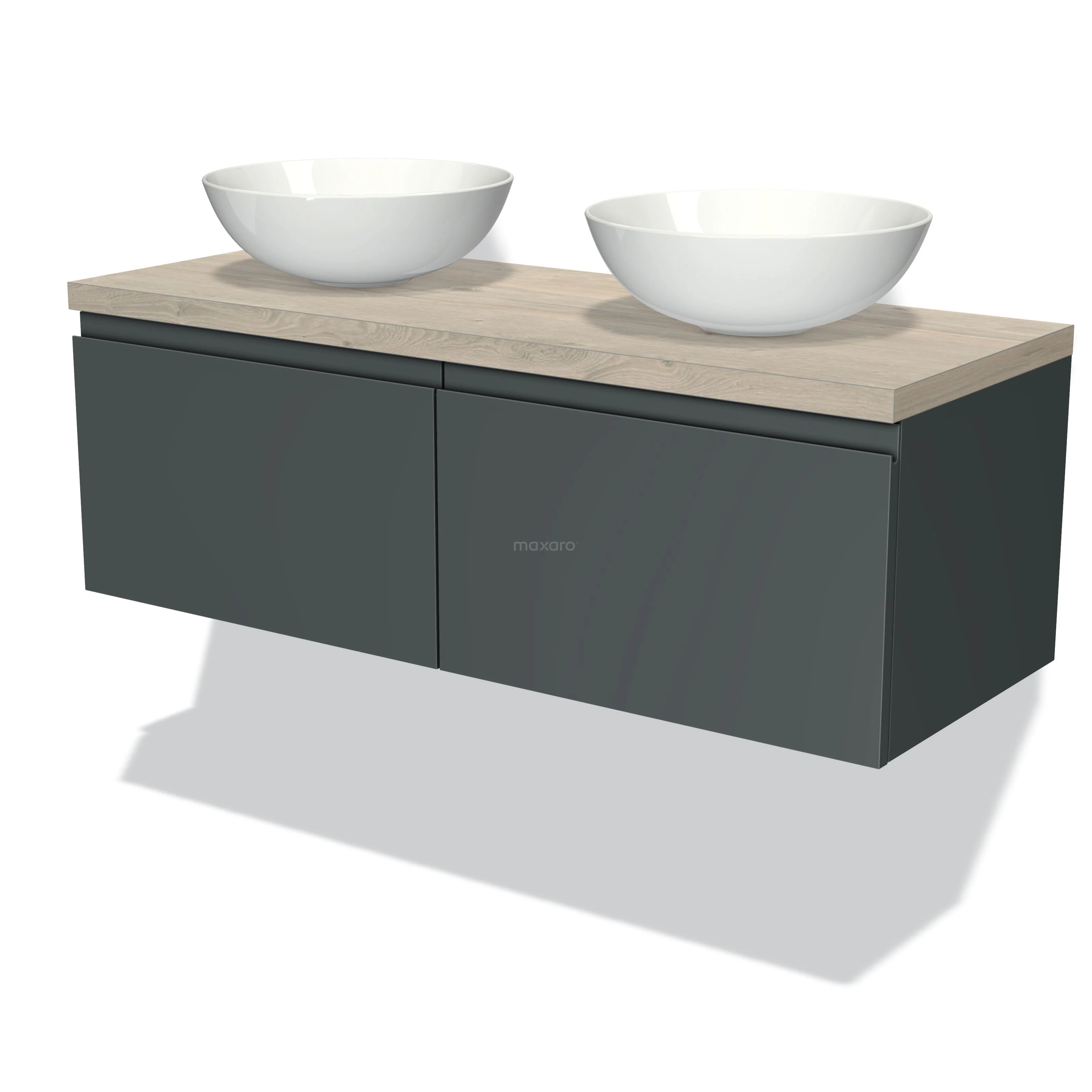 Modulo Plato Badmöbel mit Aufsatzwaschbecken | 120 cm Dunkelgrau Grifflos front Hellgraue Eiche blatt 2 nebeneinanderliegende Schubladen