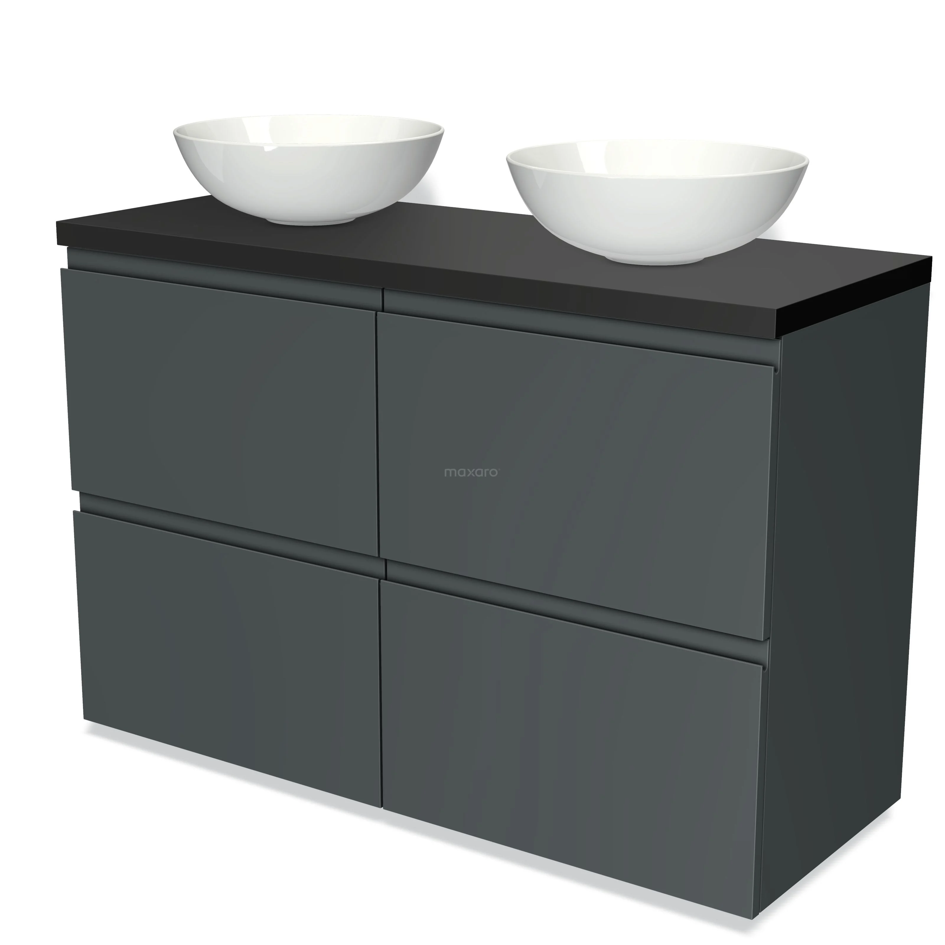 Modulo Plato Badmöbel mit Aufsatzwaschbecken | 120 cm Dunkelgrau Grifflos front Matt Schwarz blatt 4 hohe Schubladen