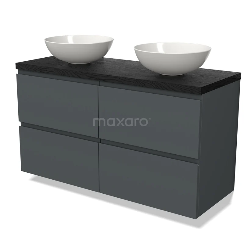 Modulo Plato Badmöbel mit Aufsatzwaschbecken | 120 cm Dunkelgrau Grifflos front Schwarze Eiche blatt 4 Schubladen