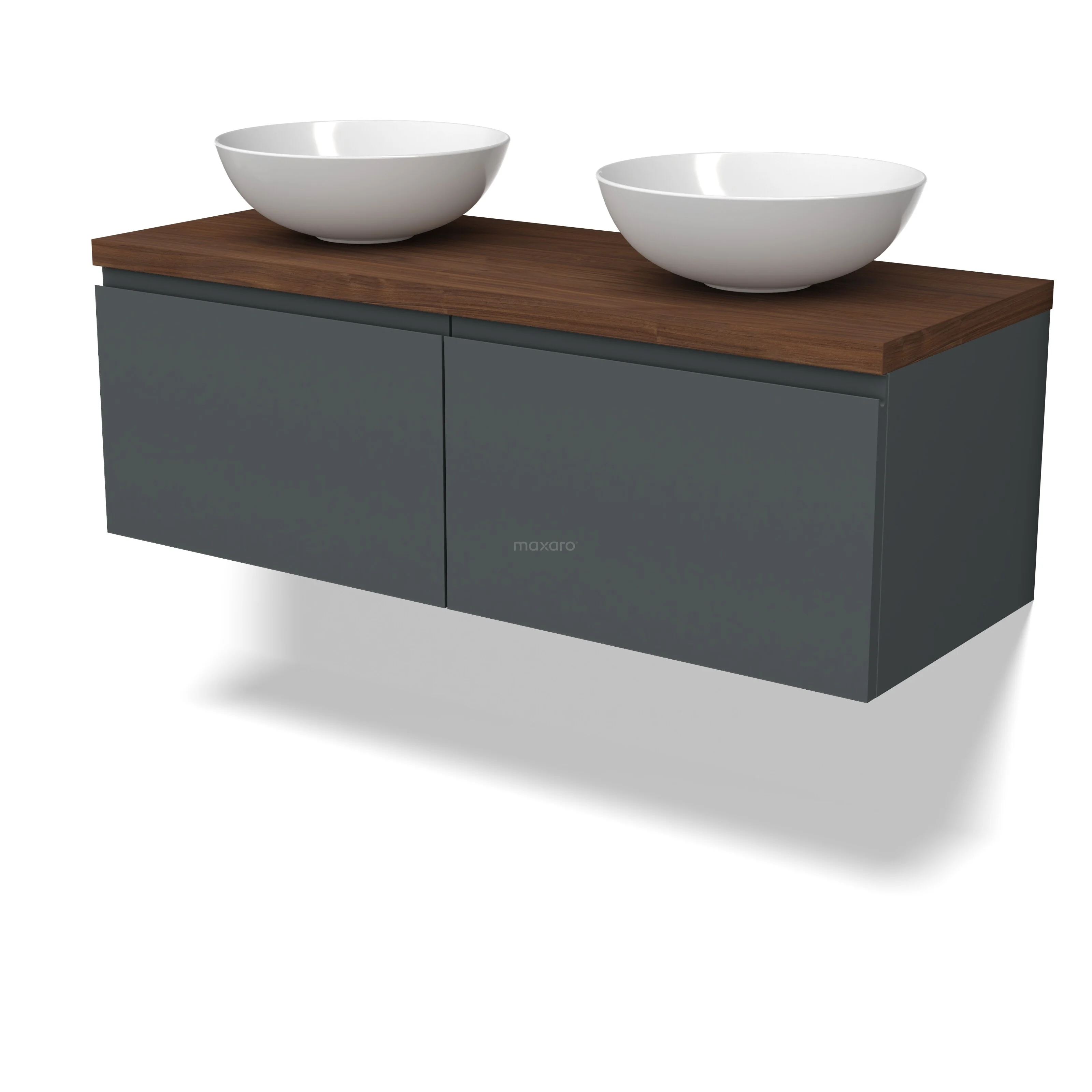 Modulo Plato Badmöbel mit Aufsatzwaschbecken | 120 cm Dunkelgrau Grifflos front Walnuss blatt 2 nebeneinanderliegende Schubladen