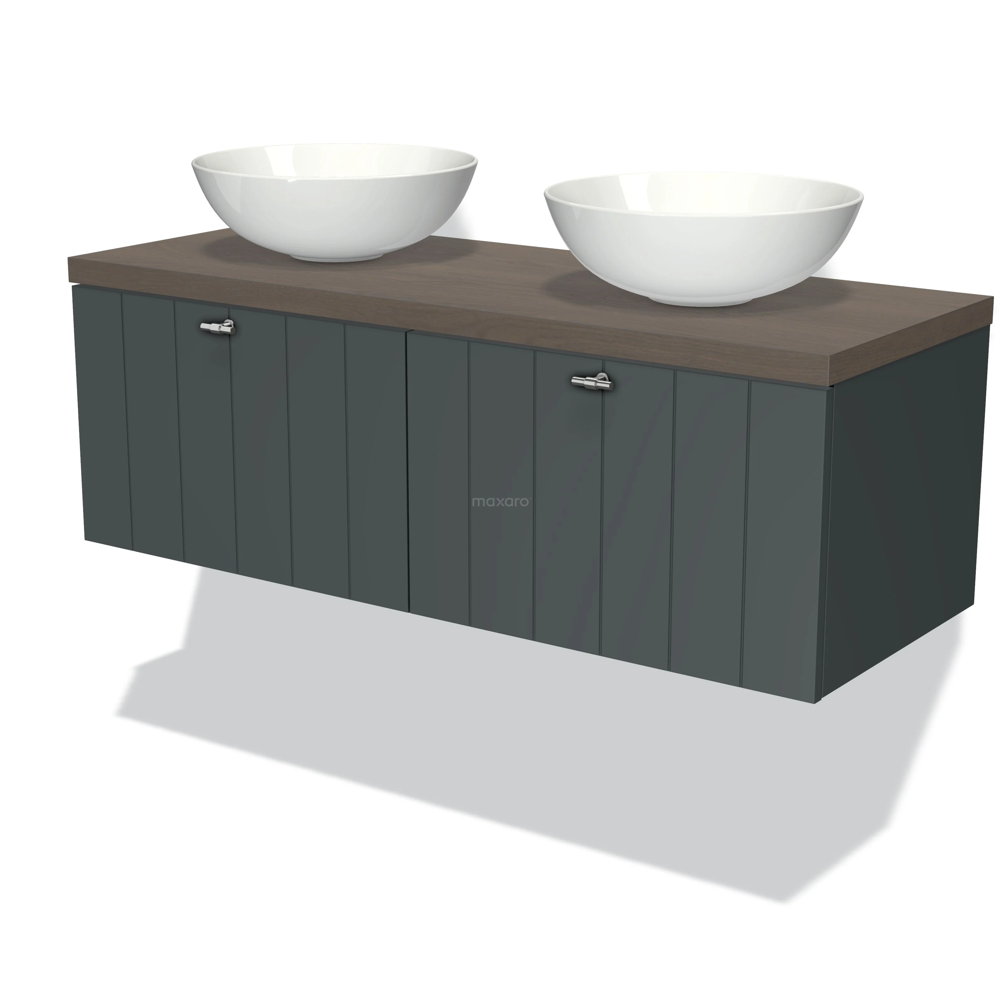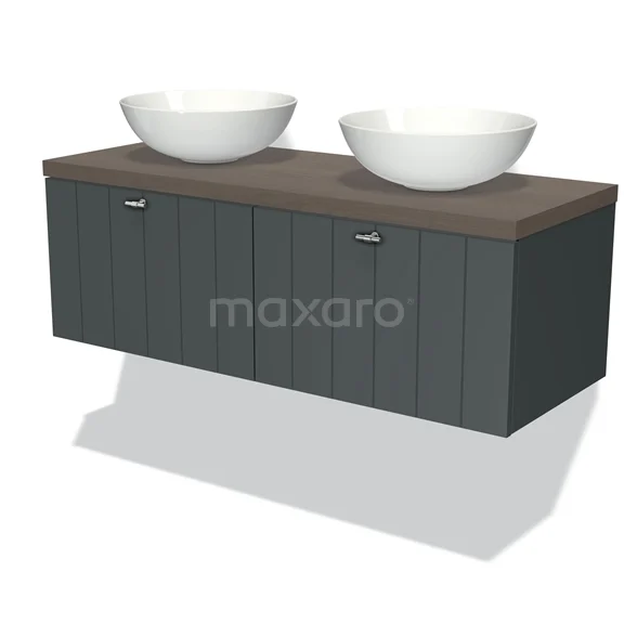 Modulo Plato Badmöbel mit Aufsatzwaschbecken | 120 cm Dunkelgrau Lamelle front Dunkelbraune Eiche blatt 2 nebeneinanderliegende Schubladen