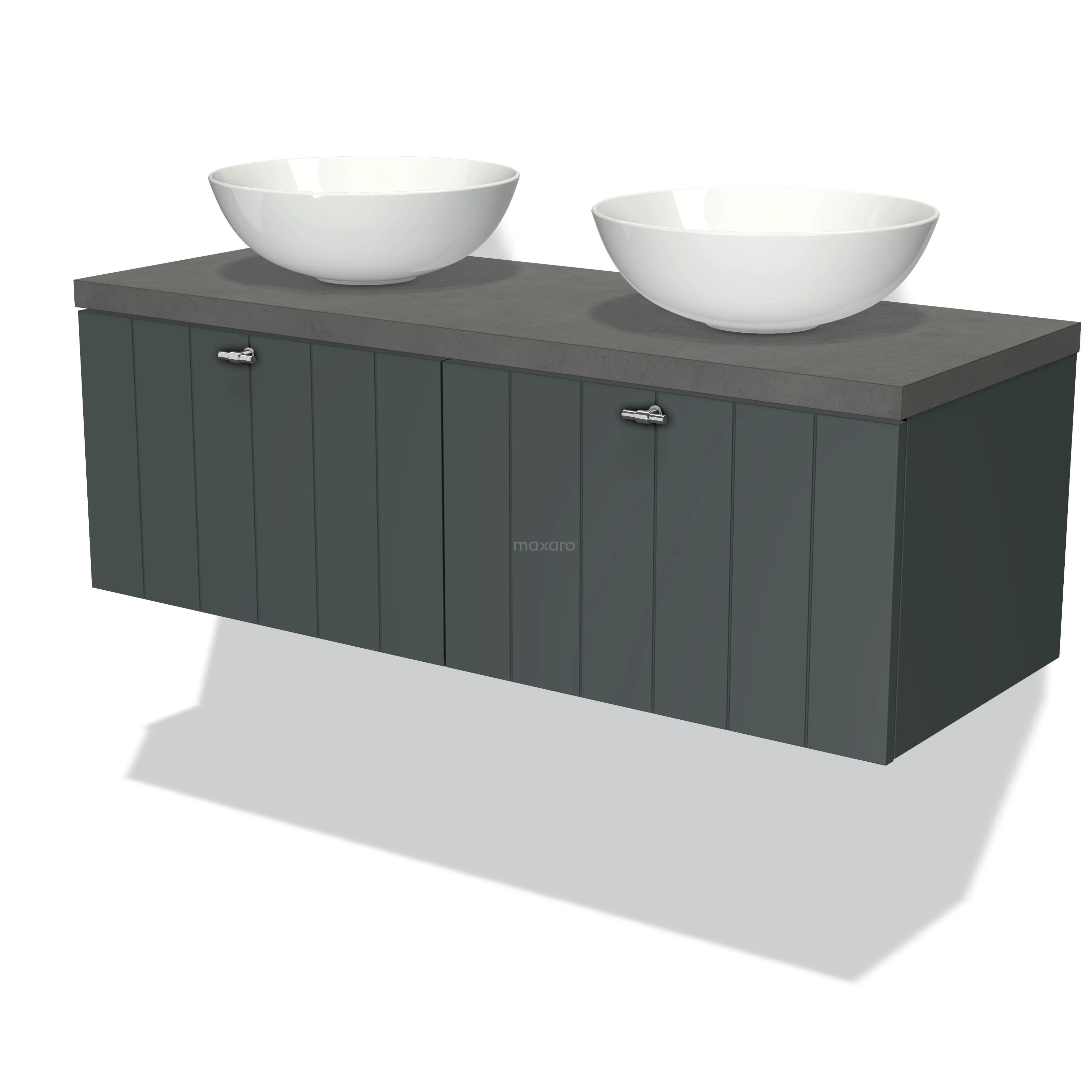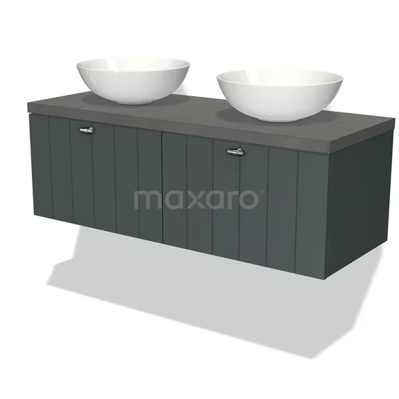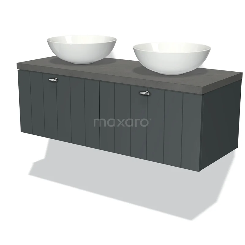 Modulo Plato Badmöbel mit Aufsatzwaschbecken | 120 cm Dunkelgrau Lamelle front Dunkelgrauer Beton blatt 2 nebeneinanderliegende Schubladen