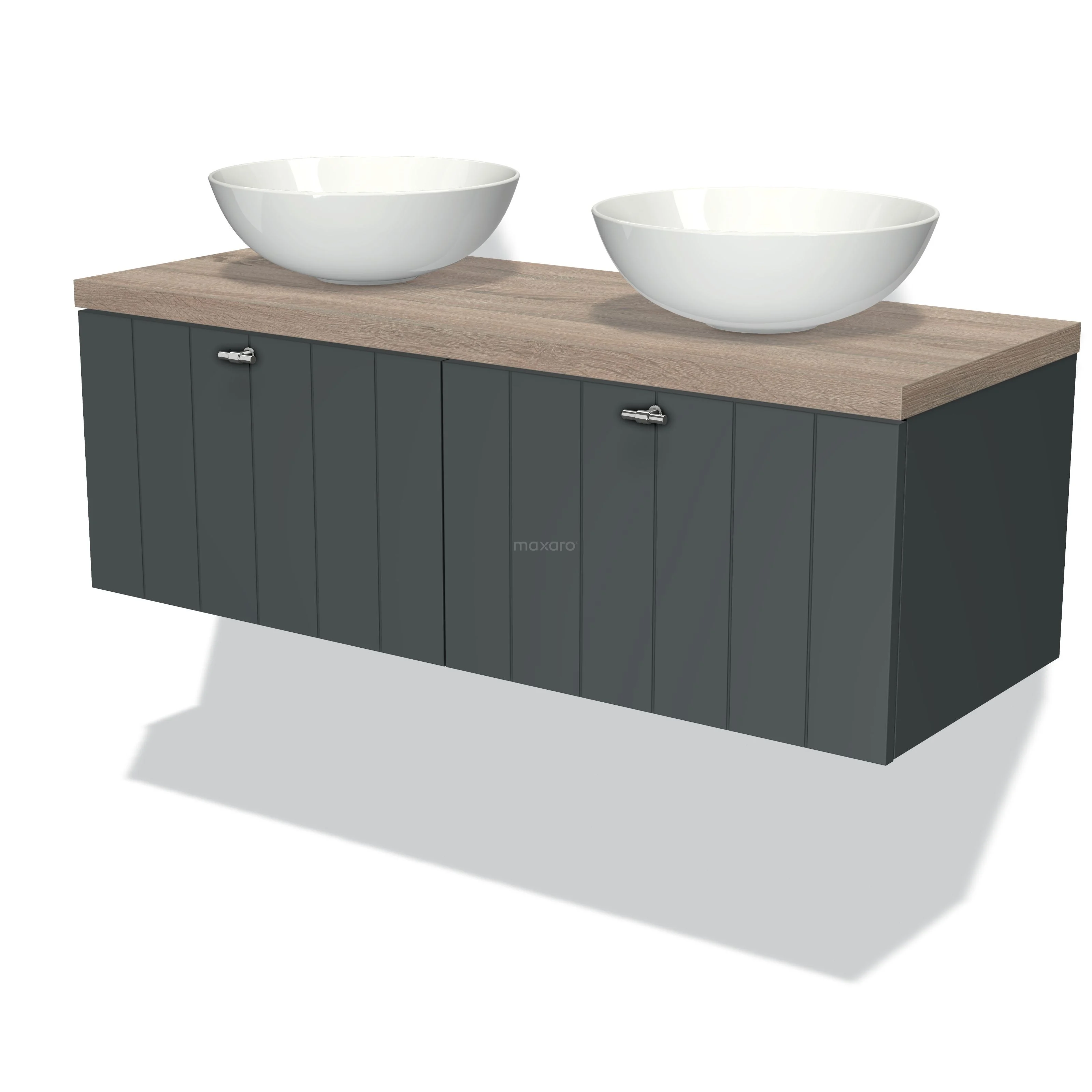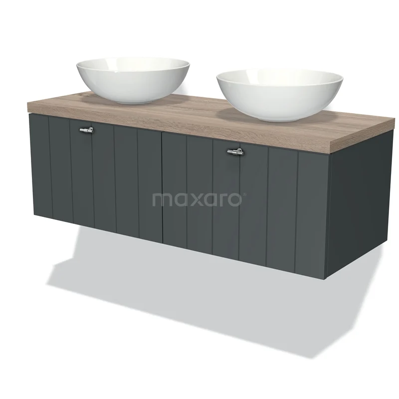 Modulo Plato Badmöbel mit Aufsatzwaschbecken | 120 cm Dunkelgrau Lamelle front Eiche blatt 2 nebeneinanderliegende Schubladen