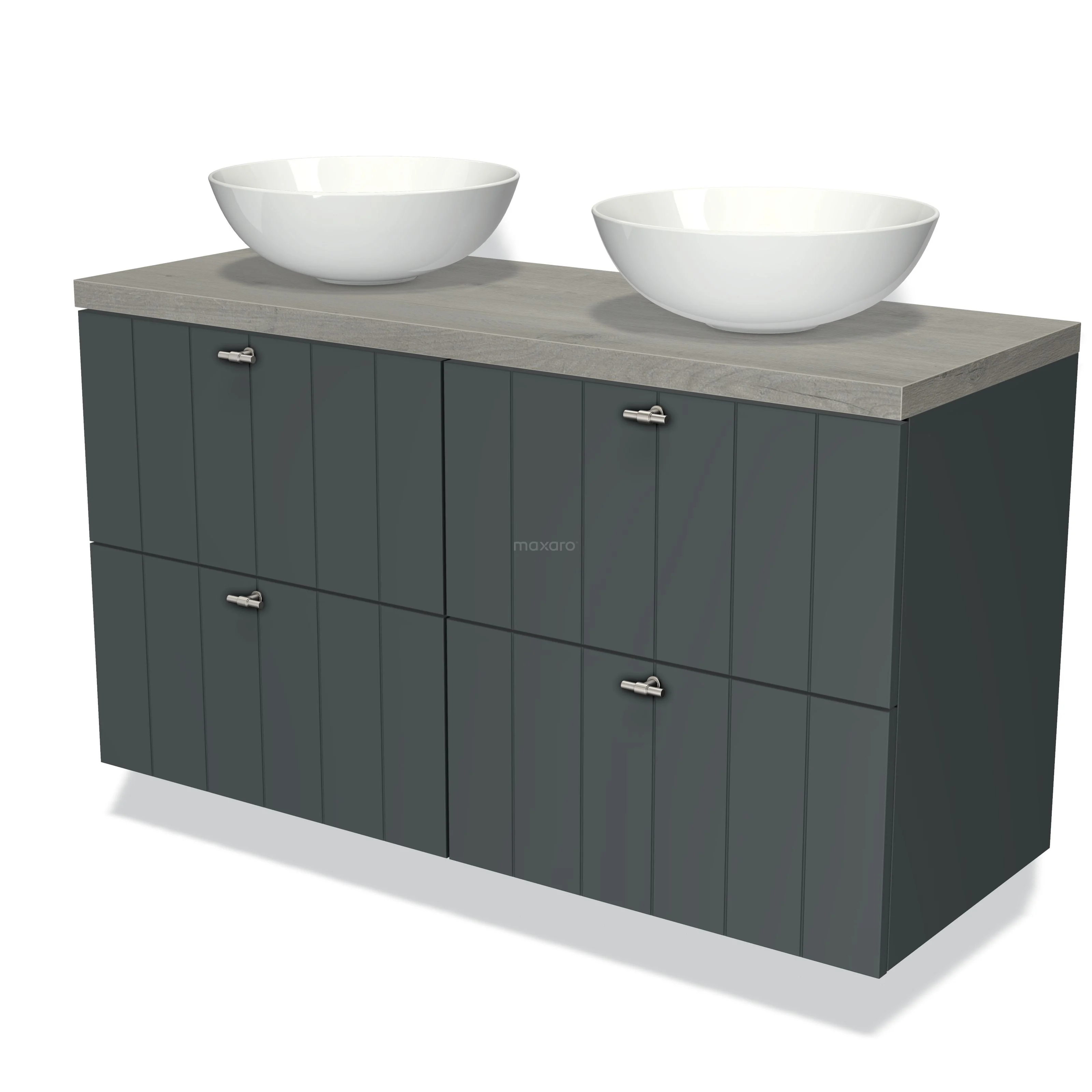 Modulo Plato Badmöbel mit Aufsatzwaschbecken | 120 cm Dunkelgrau Lamelle front Graue Eiche blatt 4 Schubladen