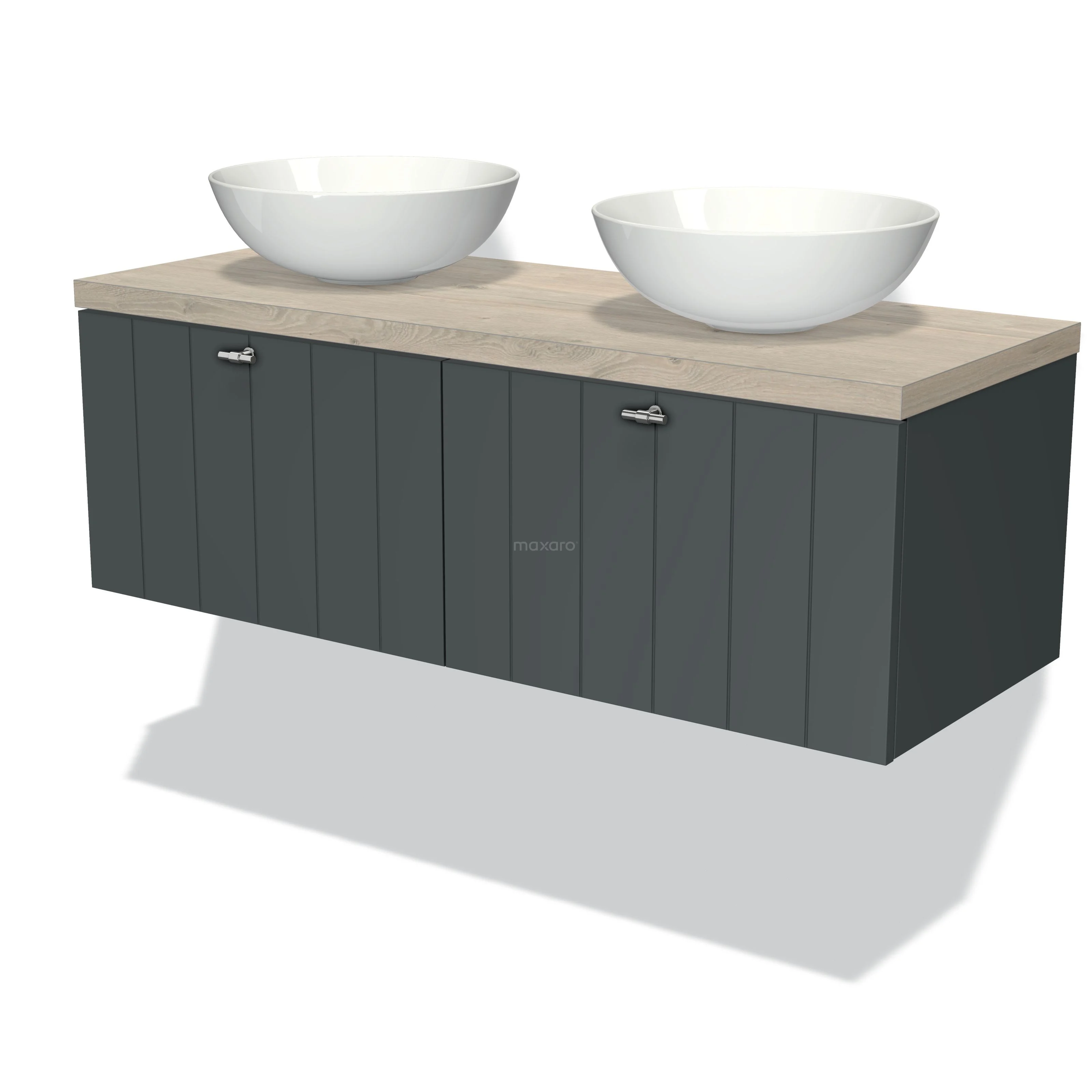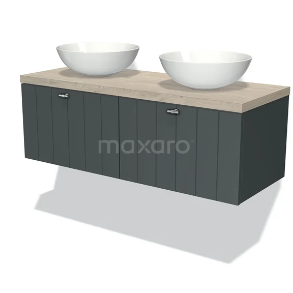 Modulo Plato Badmöbel mit Aufsatzwaschbecken | 120 cm Dunkelgrau Lamelle front Hellgraue Eiche blatt 2 nebeneinanderliegende Schubladen