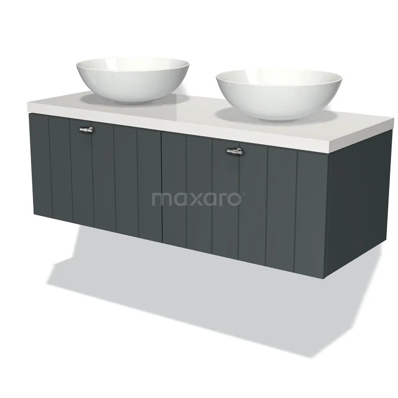 Modulo Plato Badmöbel mit Aufsatzwaschbecken | 120 cm Dunkelgrau Lamelle front Hochglanz Weiß blatt 2 nebeneinanderliegende Schubladen