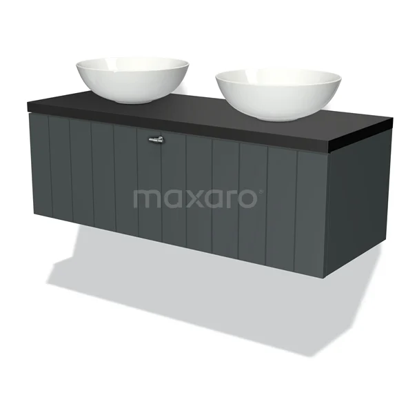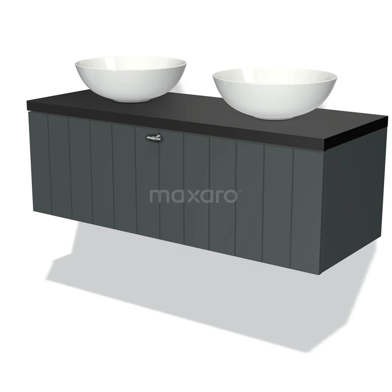 Modulo Plato Badmöbel mit Aufsatzwaschbecken | 120 cm Dunkelgrau Lamelle front Matt Schwarz blatt 1 Schublade
