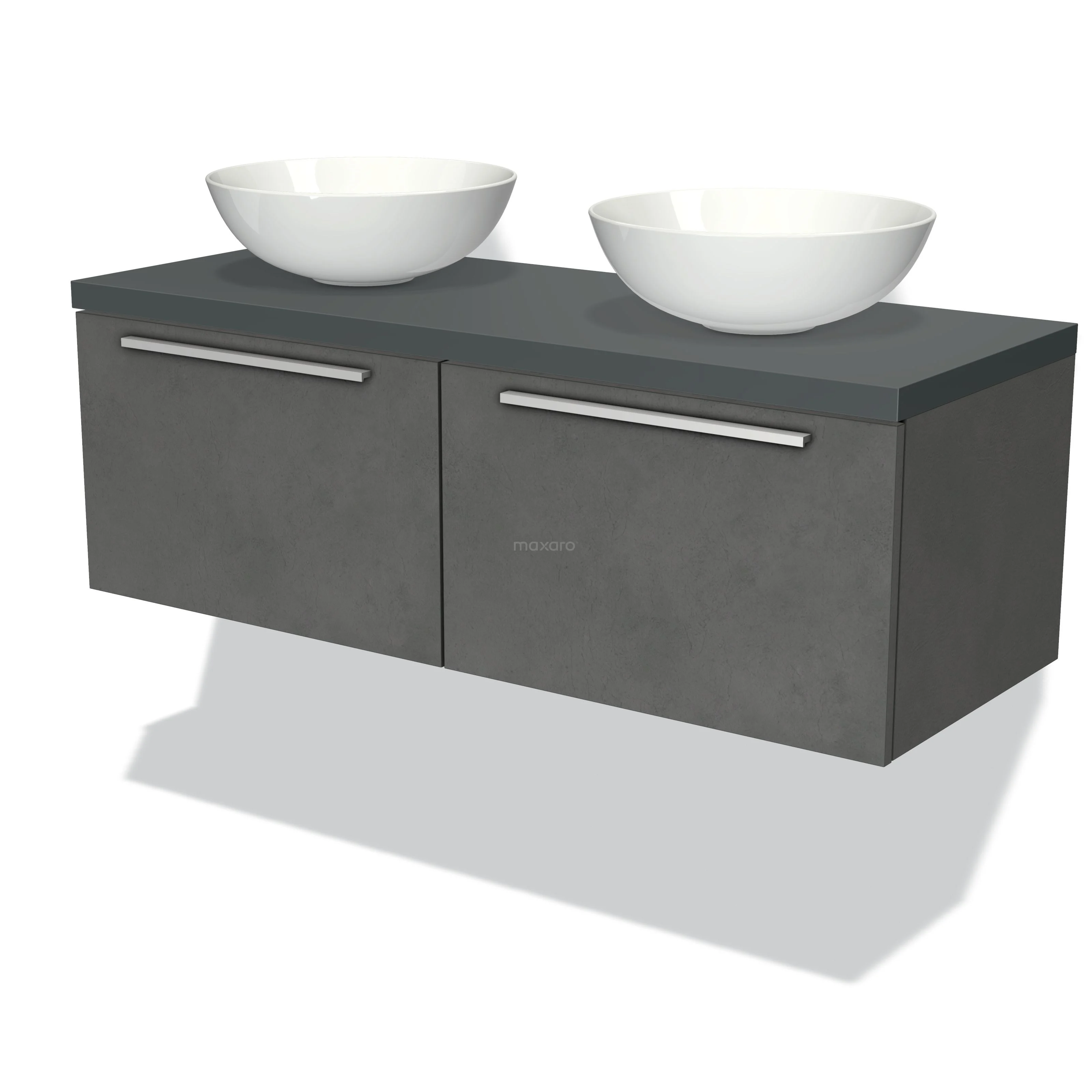 Modulo Plato Badmöbel mit Aufsatzwaschbecken | 120 cm Dunkelgrauer Beton Flach front Dunkelgrau blatt 2 nebeneinanderliegende Schubladen