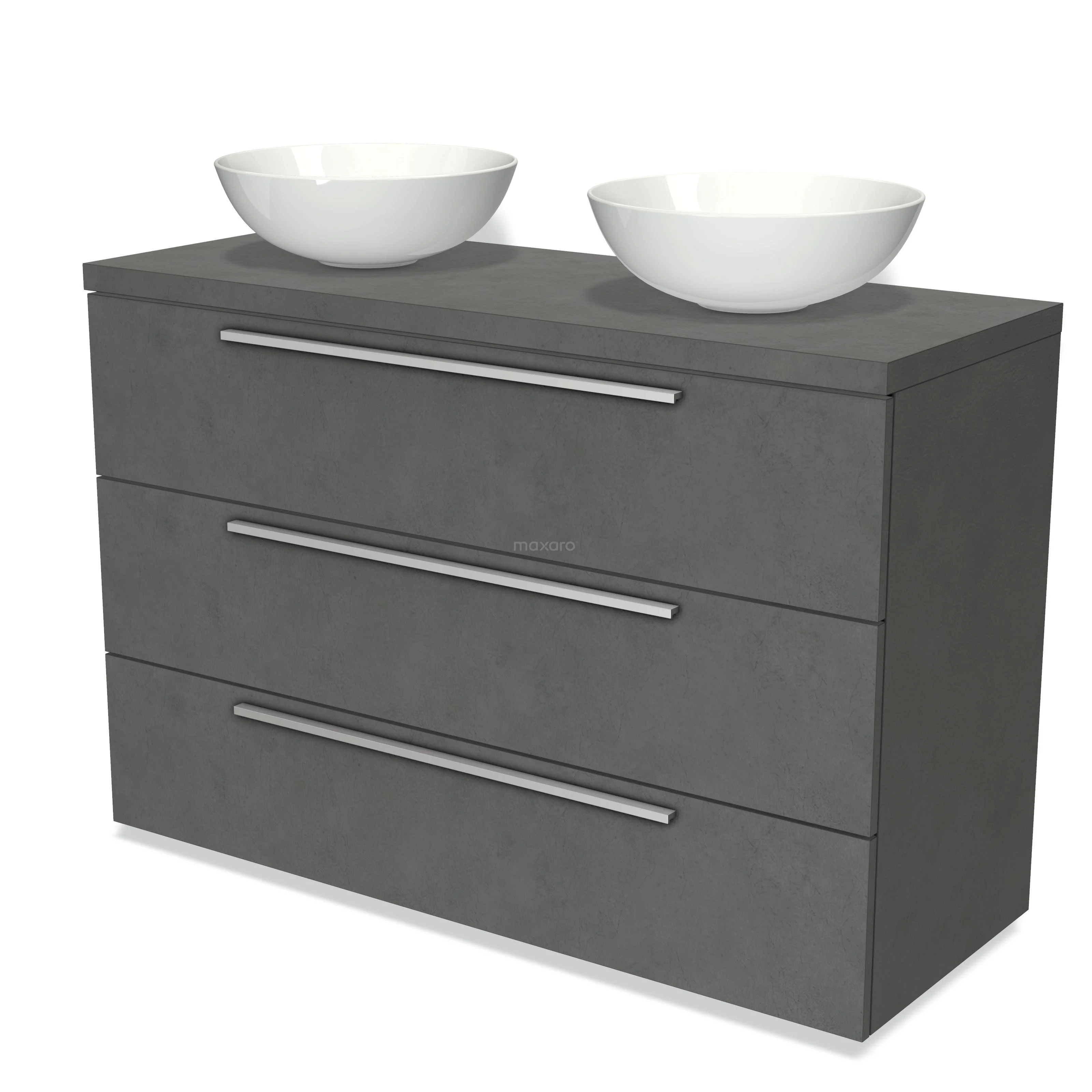 Modulo Plato Badmöbel mit Aufsatzwaschbecken | 120 cm Dunkelgrauer Beton Flach front Dunkelgrauer Beton blatt 3 Schubladen