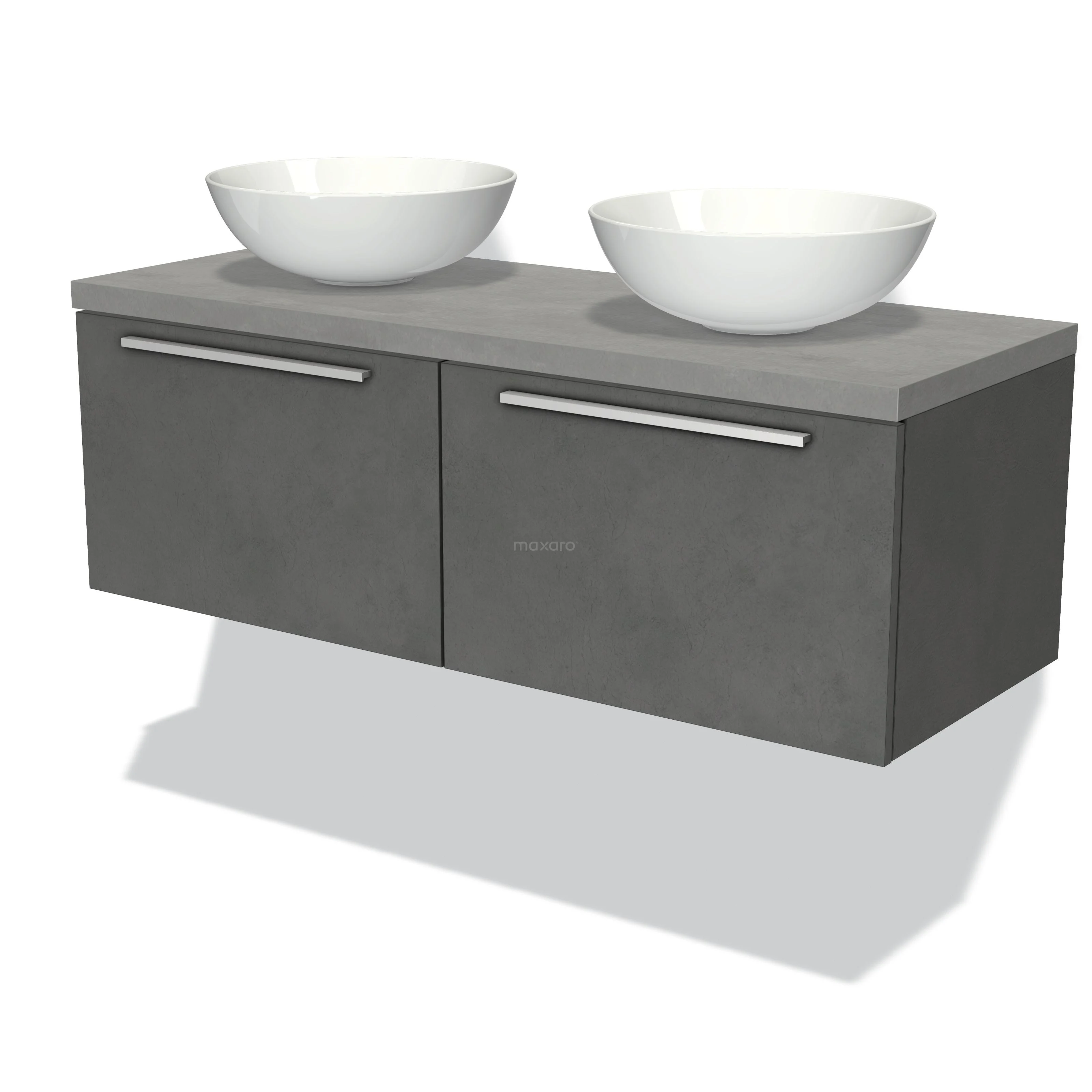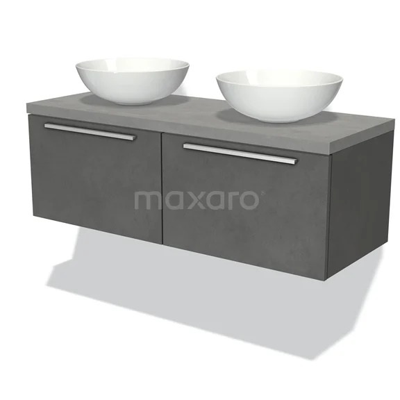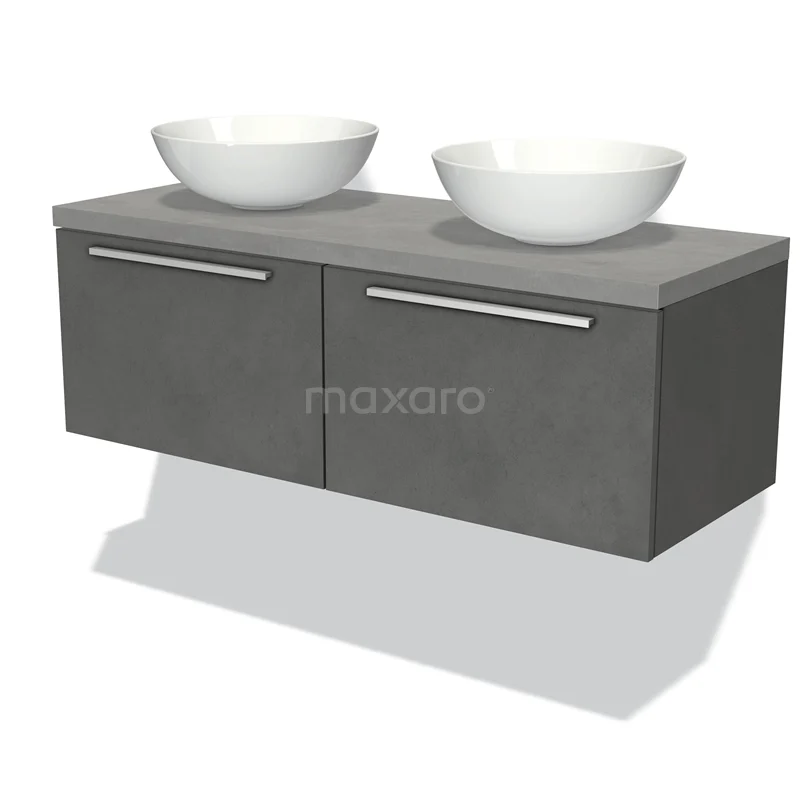 Modulo Plato Badmöbel mit Aufsatzwaschbecken | 120 cm Dunkelgrauer Beton Flach front Hellgrauer Beton blatt 2 nebeneinanderliegende Schubladen