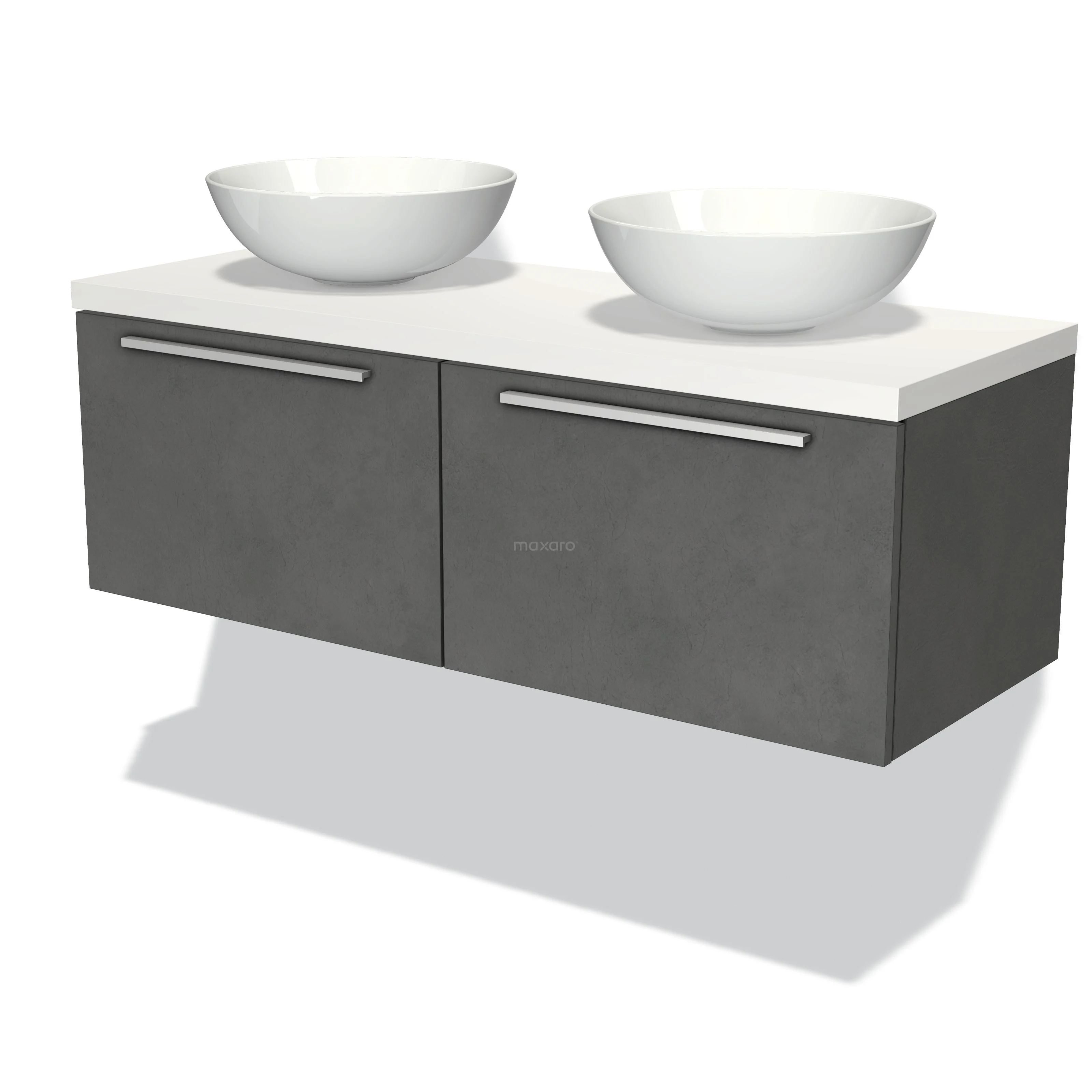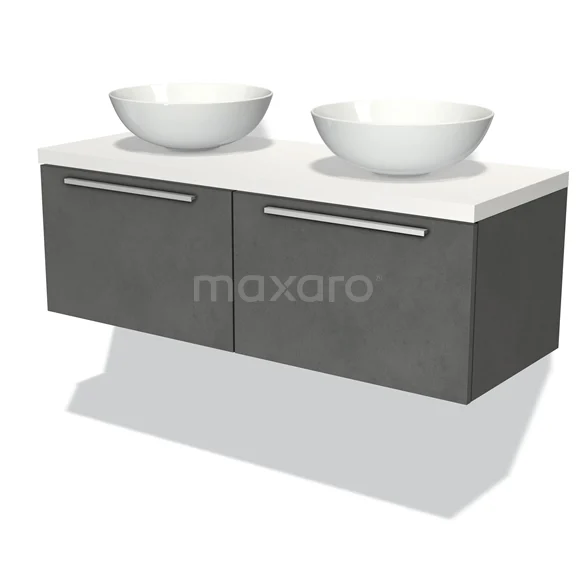 Modulo Plato Badmöbel mit Aufsatzwaschbecken | 120 cm Dunkelgrauer Beton Flach front Matt Weiß blatt 2 nebeneinanderliegende Schubladen