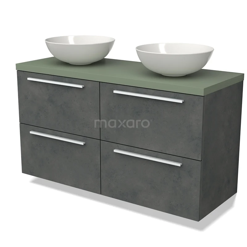 Modulo Plato Badmöbel mit Aufsatzwaschbecken | 120 cm Dunkelgrauer Beton Flach front Salbeigrün blatt 4 Schubladen