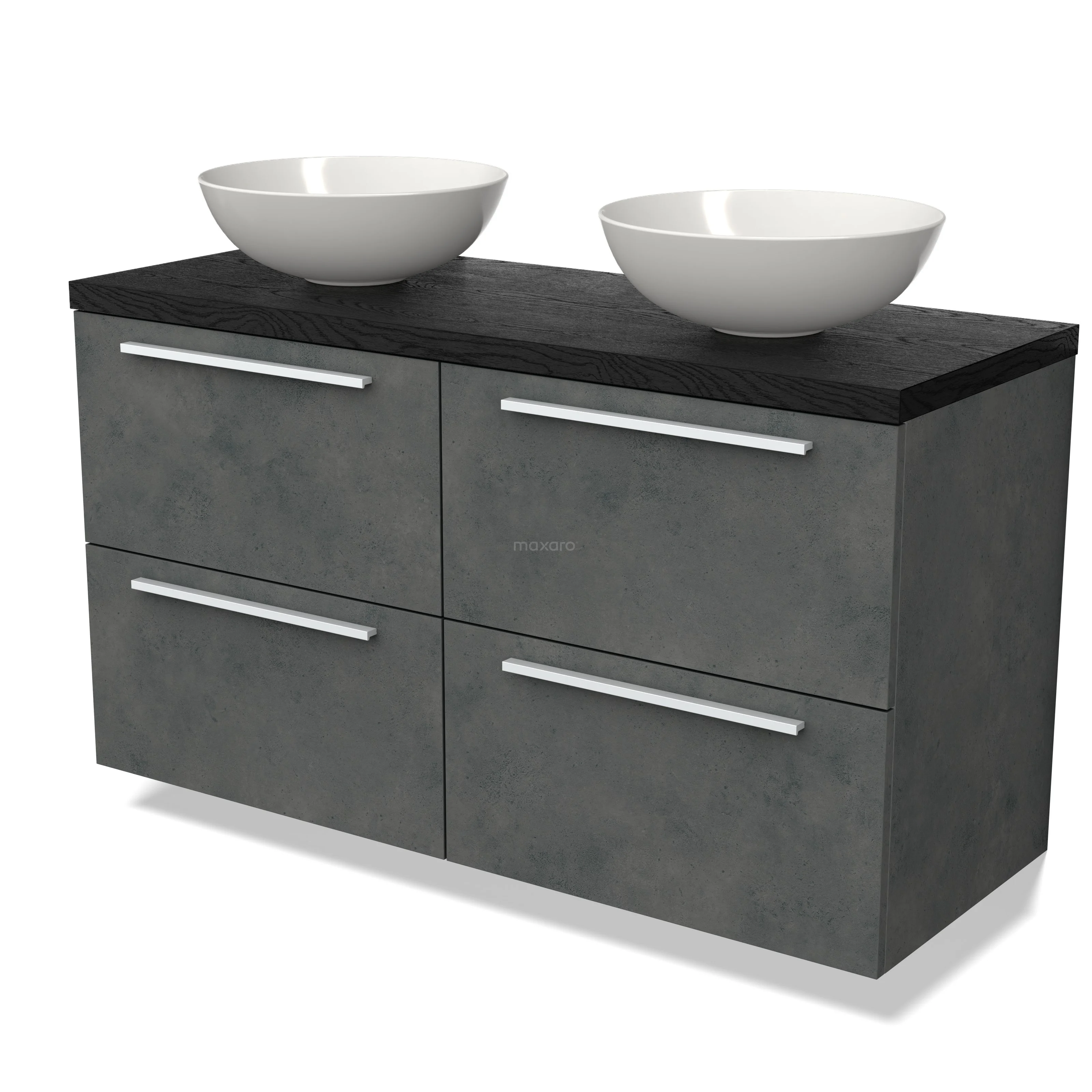 Modulo Plato Badmöbel mit Aufsatzwaschbecken | 120 cm Dunkelgrauer Beton Flach front Schwarze Eiche blatt 4 Schubladen