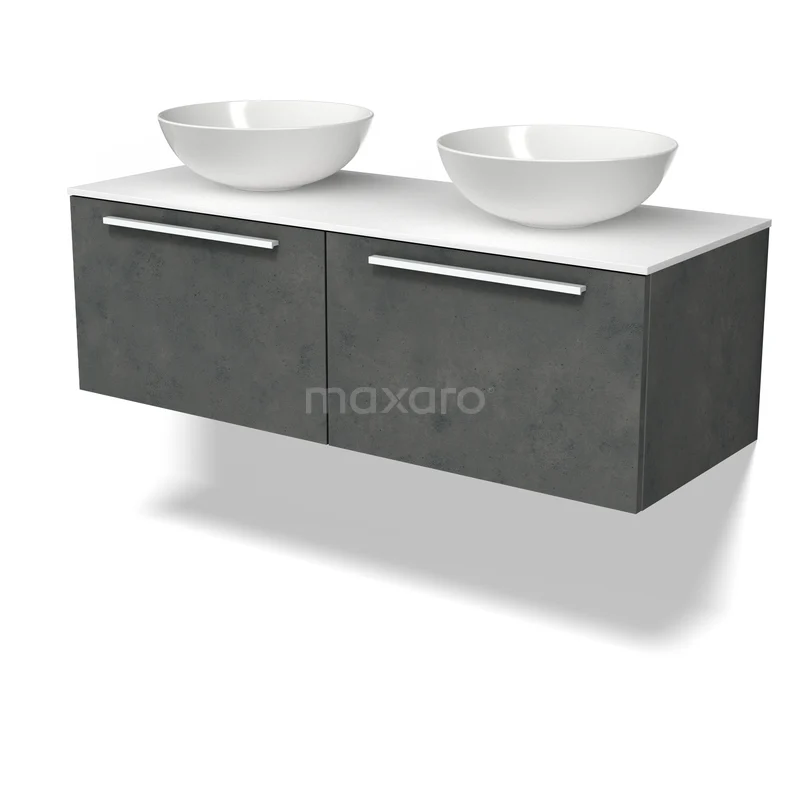 Modulo Plato Badmöbel mit Aufsatzwaschbecken | 120 cm Dunkelgrauer Beton Flach front Solid Surface blatt 2 nebeneinanderliegende Schubladen