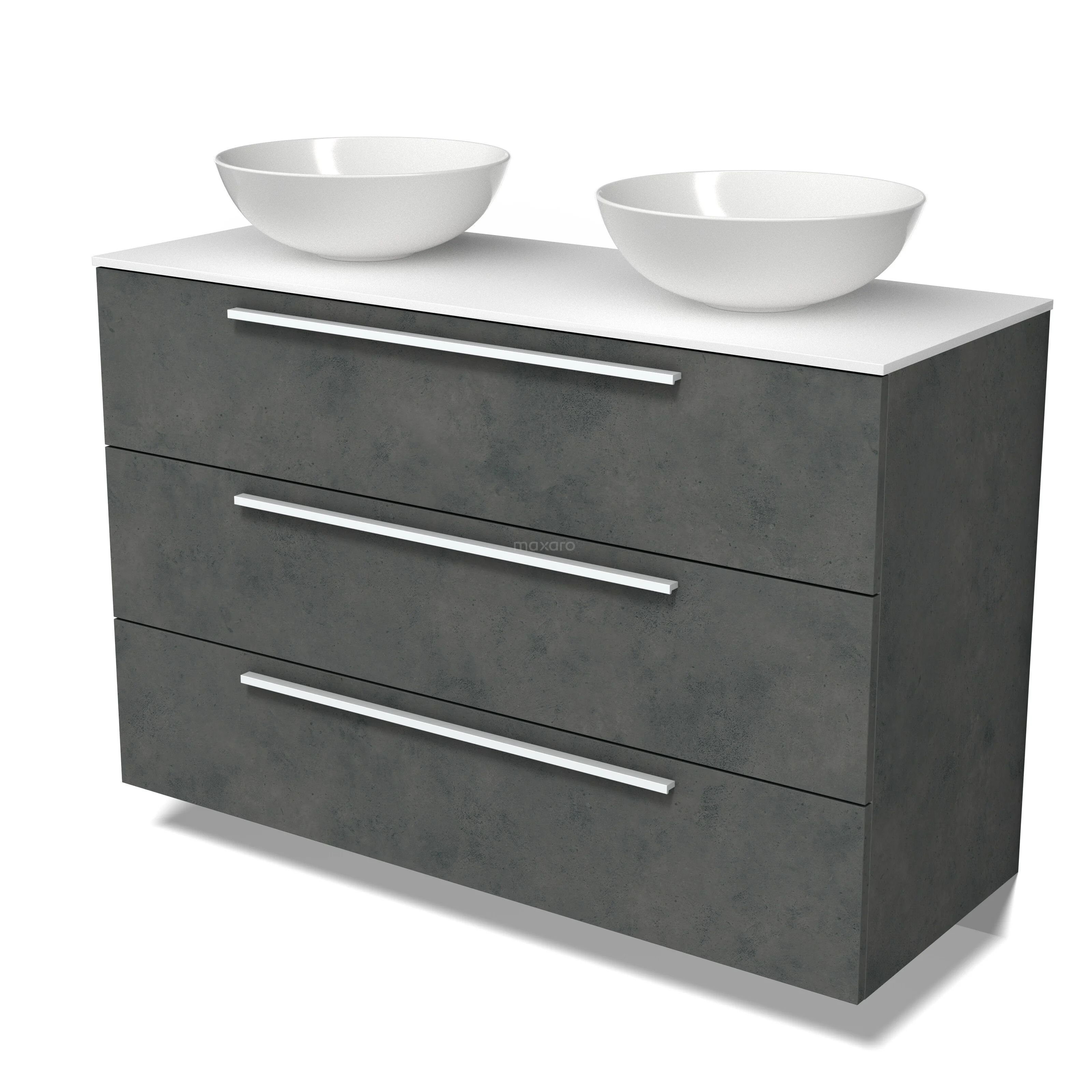 Modulo Plato Badmöbel mit Aufsatzwaschbecken | 120 cm Dunkelgrauer Beton Flach front Solid Surface blatt 3 Schubladen