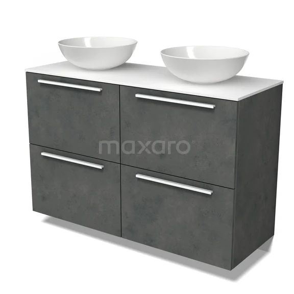 Modulo Plato Badmöbel mit Aufsatzwaschbecken | 120 cm Dunkelgrauer Beton Flach front Solid Surface blatt 4 hohe Schubladen