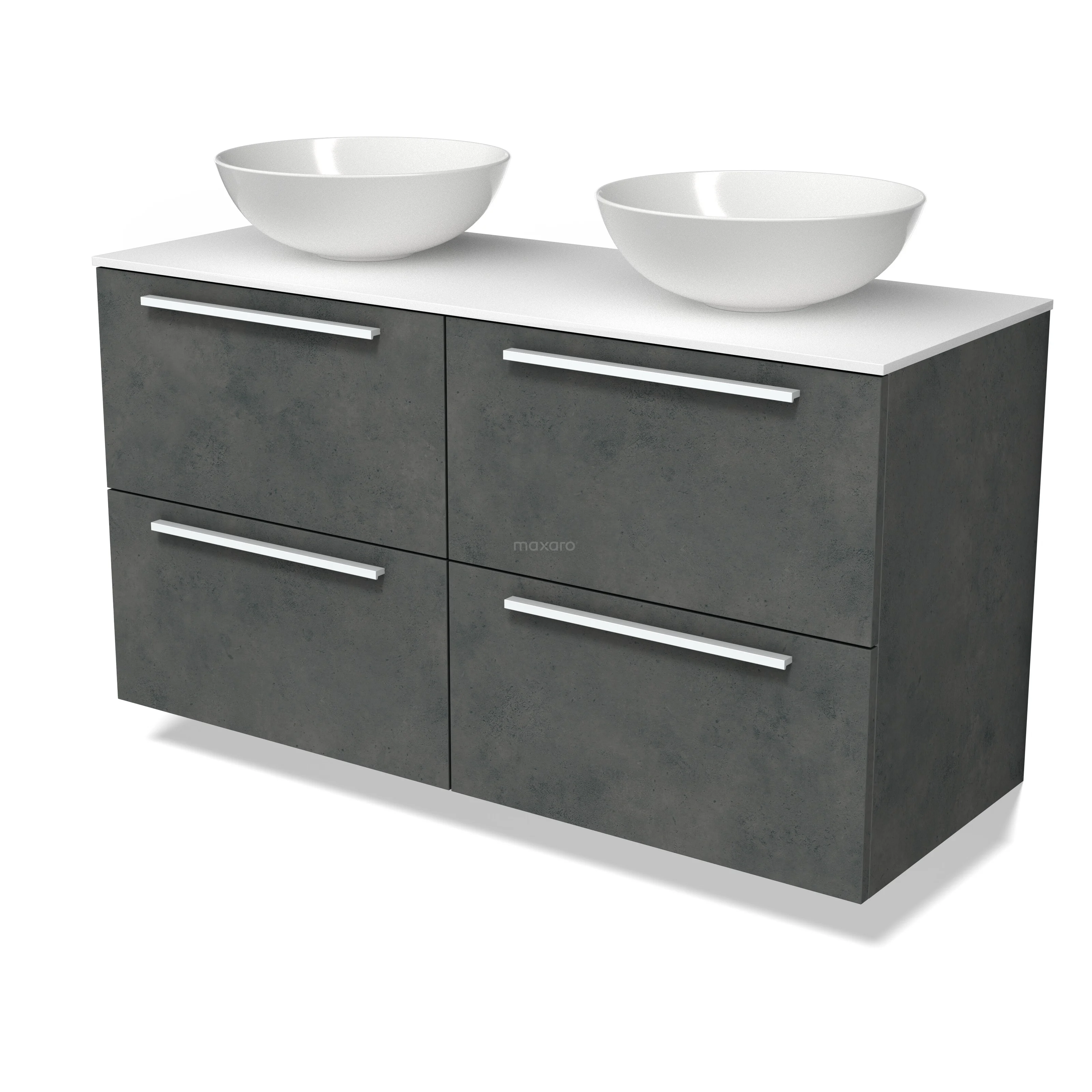 Modulo Plato Badmöbel mit Aufsatzwaschbecken | 120 cm Dunkelgrauer Beton Flach front Solid Surface blatt 4 Schubladen