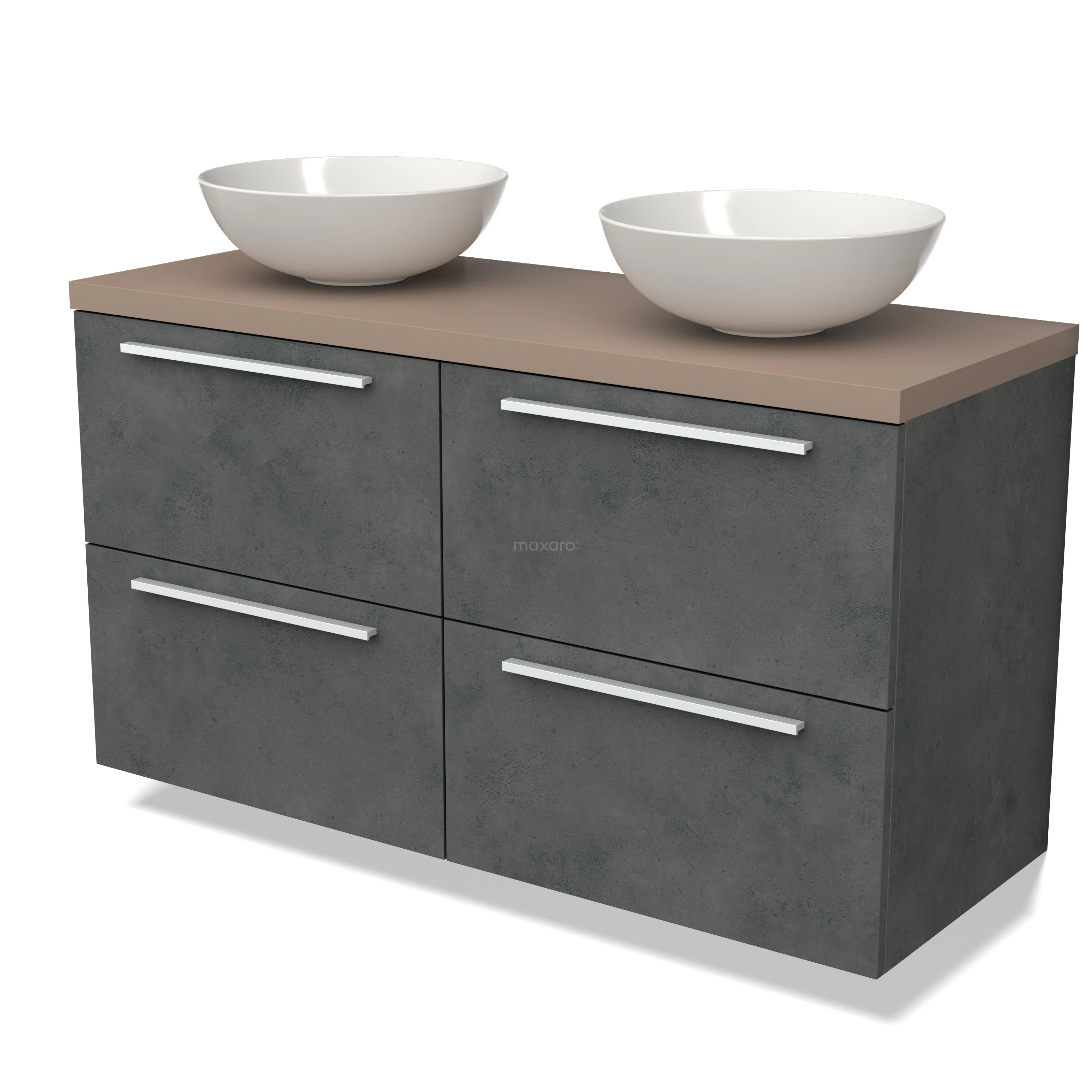 Modulo Plato Badmöbel mit Aufsatzwaschbecken | 120 cm Dunkelgrauer Beton Flach front Taupe blatt 4 Schubladen