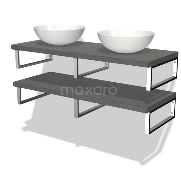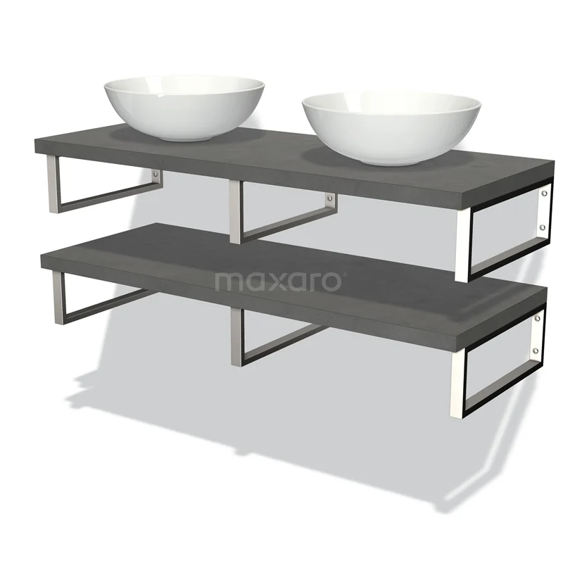 Modulo Plato Badmöbel mit Aufsatzwaschbecken | 120 cm Dunkelgrauer Beton front Dunkelgrauer Beton blatt 2 Waschtischplatten