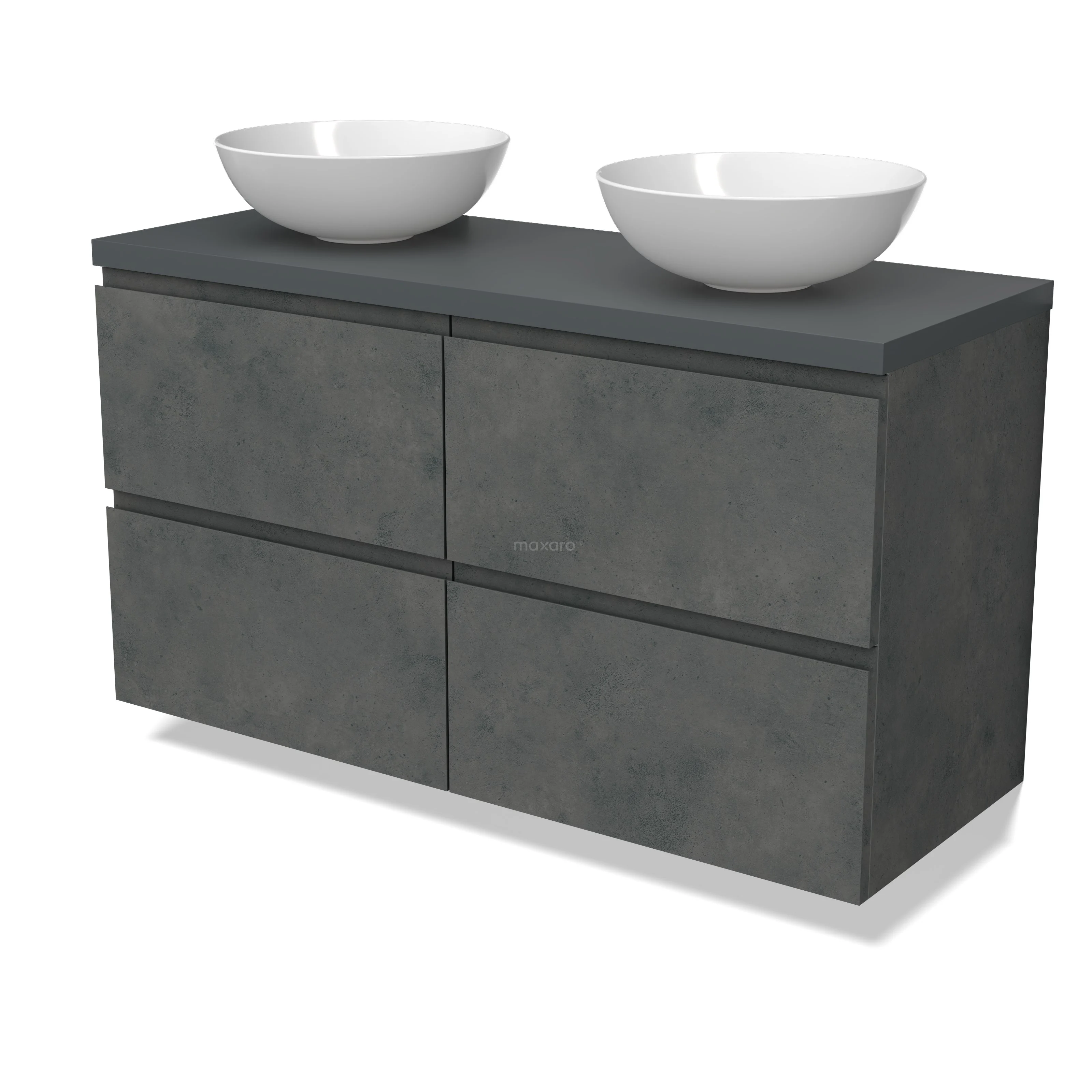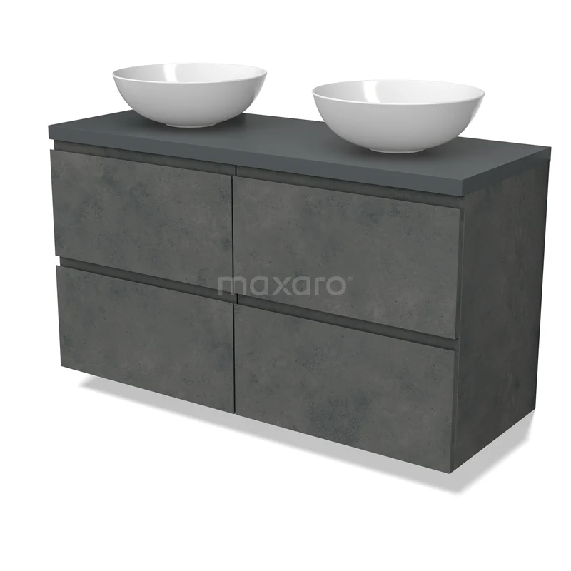 Modulo Plato Badmöbel mit Aufsatzwaschbecken | 120 cm Dunkelgrauer Beton Grifflos front Dunkelgrau blatt 4 Schubladen