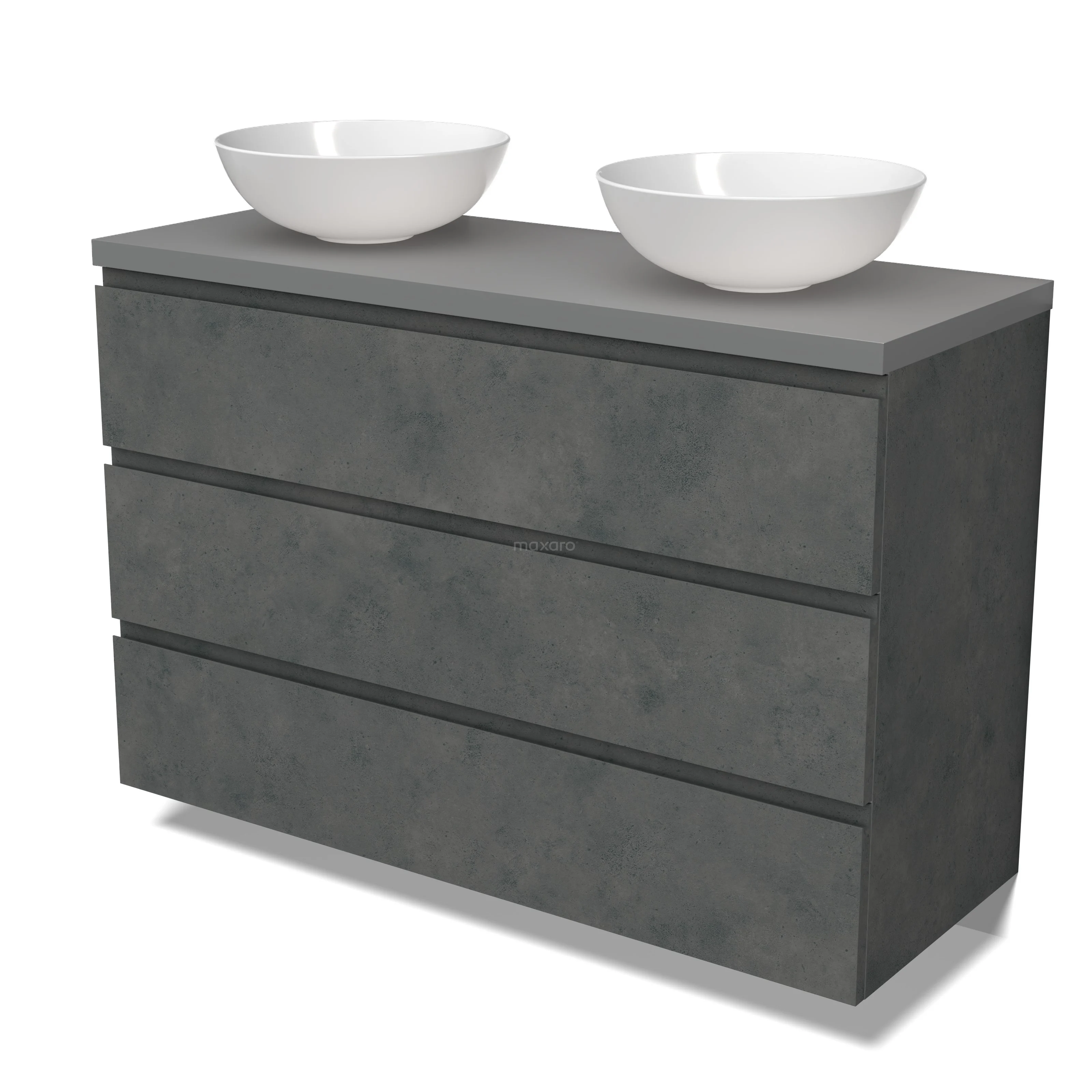 Modulo Plato Badmöbel mit Aufsatzwaschbecken | 120 cm Dunkelgrauer Beton Grifflos front Mittelgrau blatt 3 Schubladen