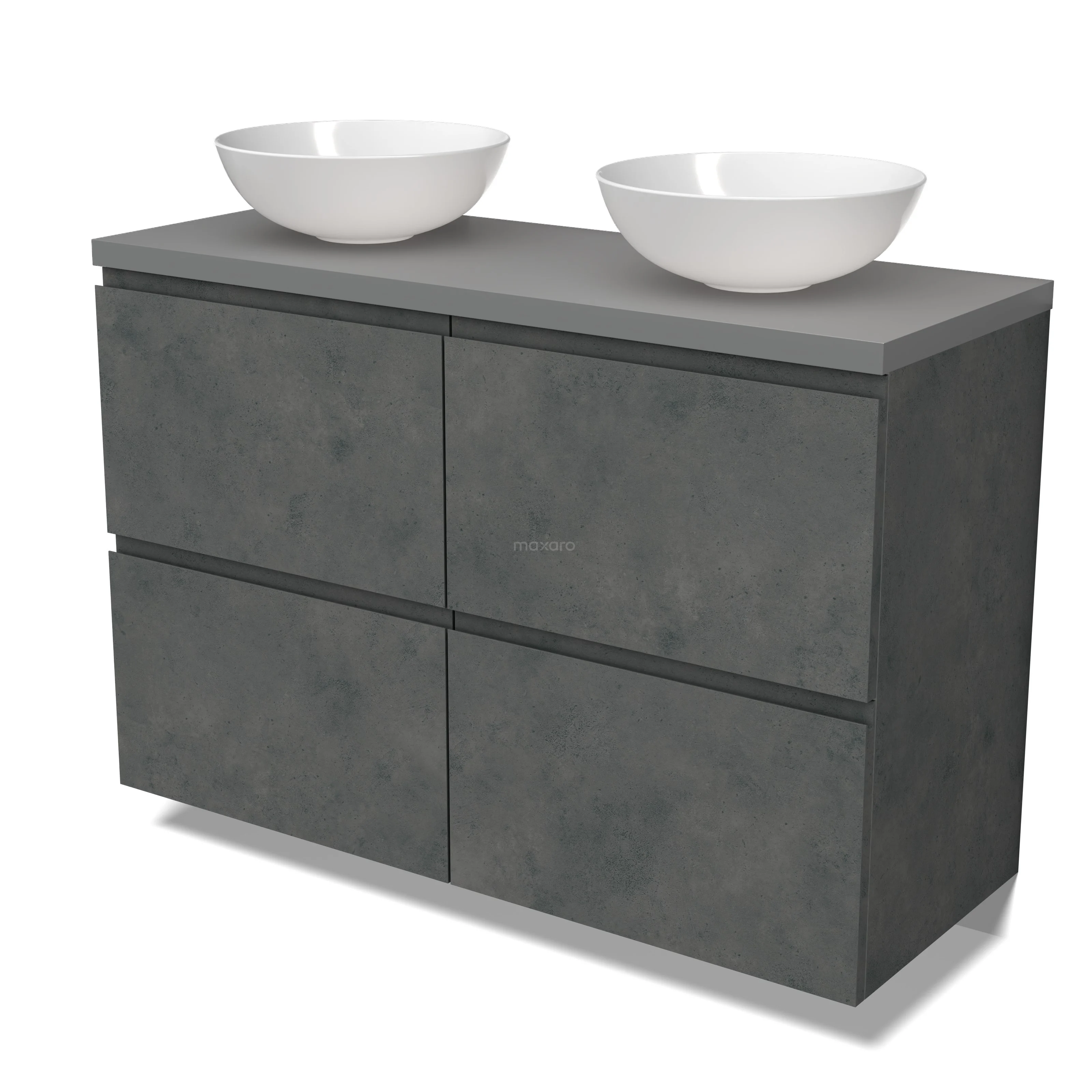 Modulo Plato Badmöbel mit Aufsatzwaschbecken | 120 cm Dunkelgrauer Beton Grifflos front Mittelgrau blatt 4 hohe Schubladen