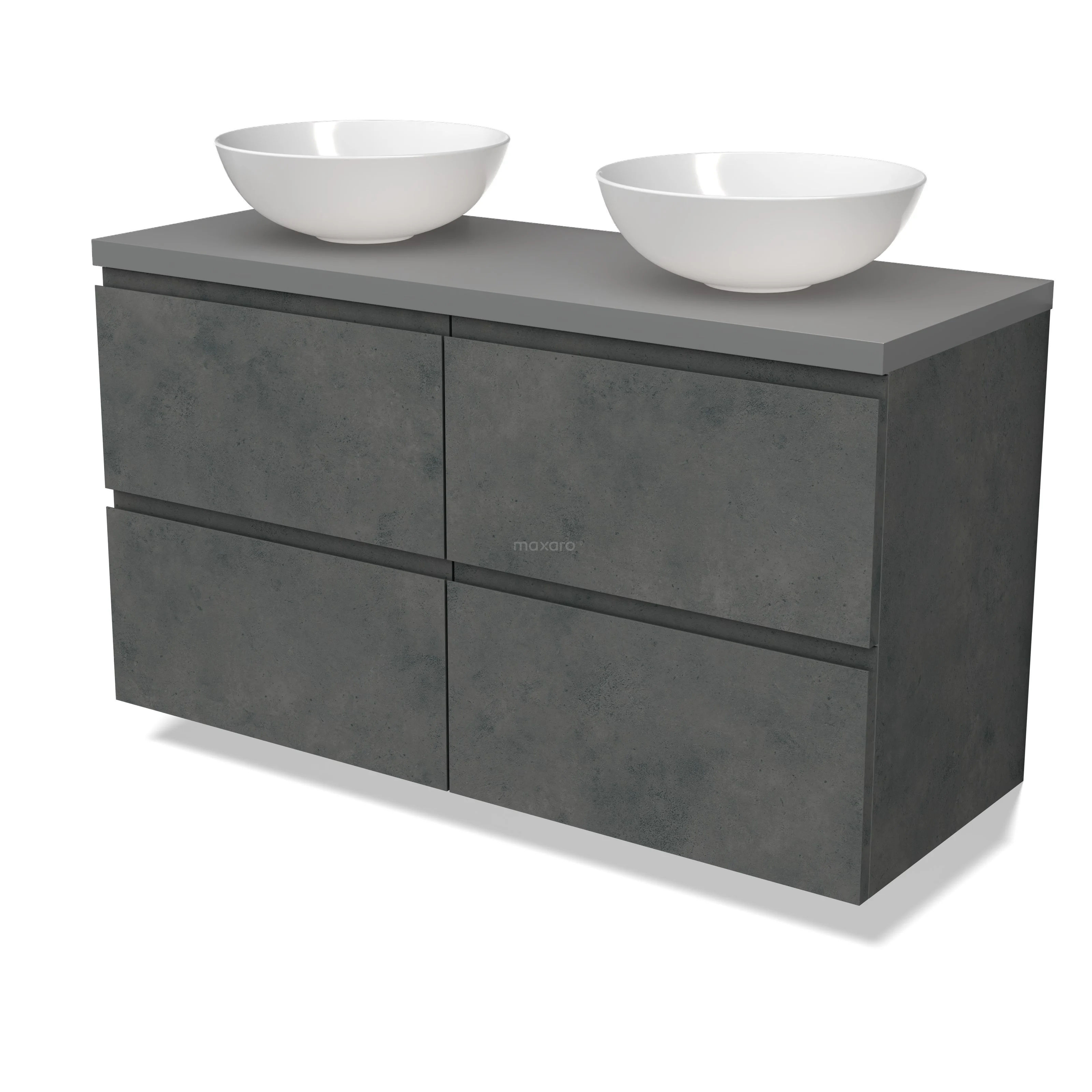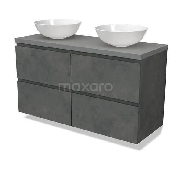 Modulo Plato Badmöbel mit Aufsatzwaschbecken | 120 cm Dunkelgrauer Beton Grifflos front Mittelgrau blatt 4 Schubladen