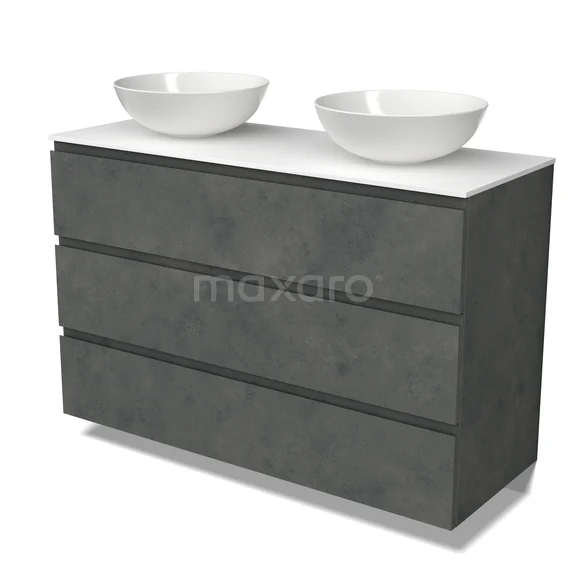 Modulo Plato Badmöbel mit Aufsatzwaschbecken | 120 cm Dunkelgrauer Beton Grifflos front Solid Surface blatt 3 Schubladen
