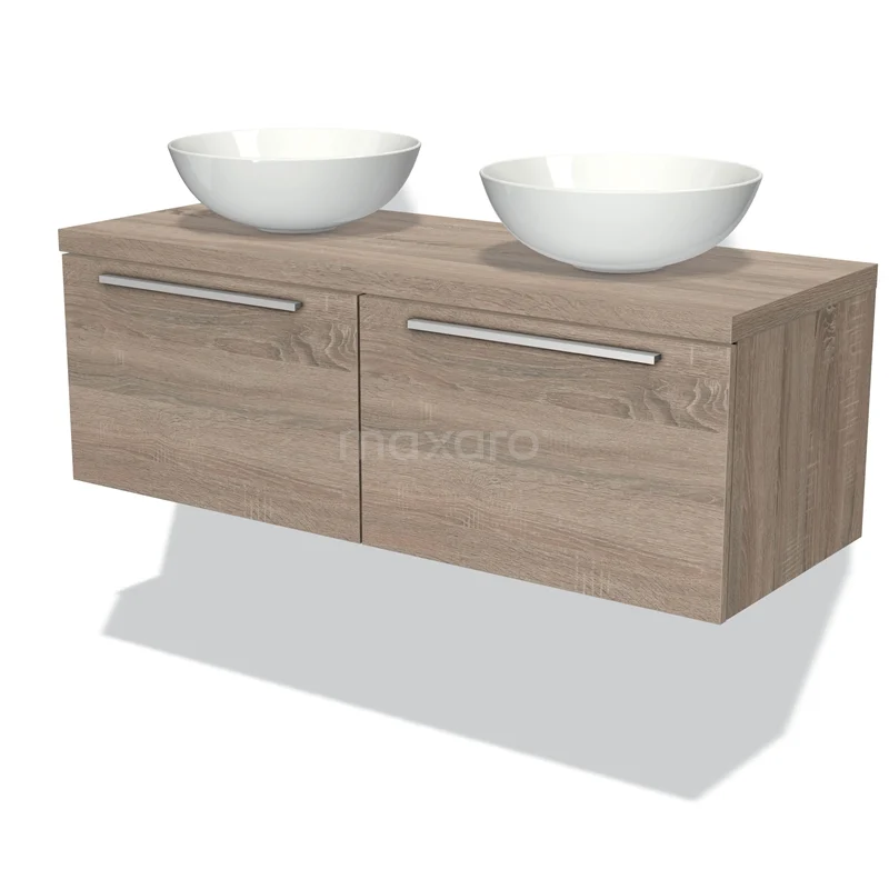 Modulo Plato Badmöbel mit Aufsatzwaschbecken | 120 cm Eiche Flach front Eiche blatt 2 nebeneinanderliegende Schubladen
