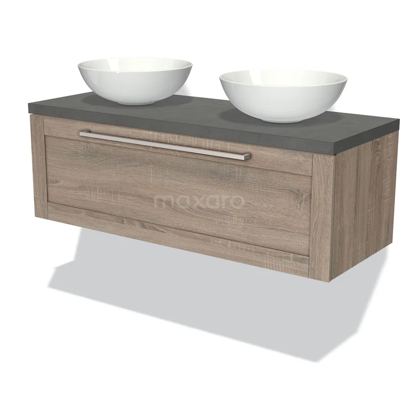 Modulo Plato Badmöbel mit Aufsatzwaschbecken | 120 cm Eiche Rahmen front Dunkelgrauer Beton blatt 1 Schublade