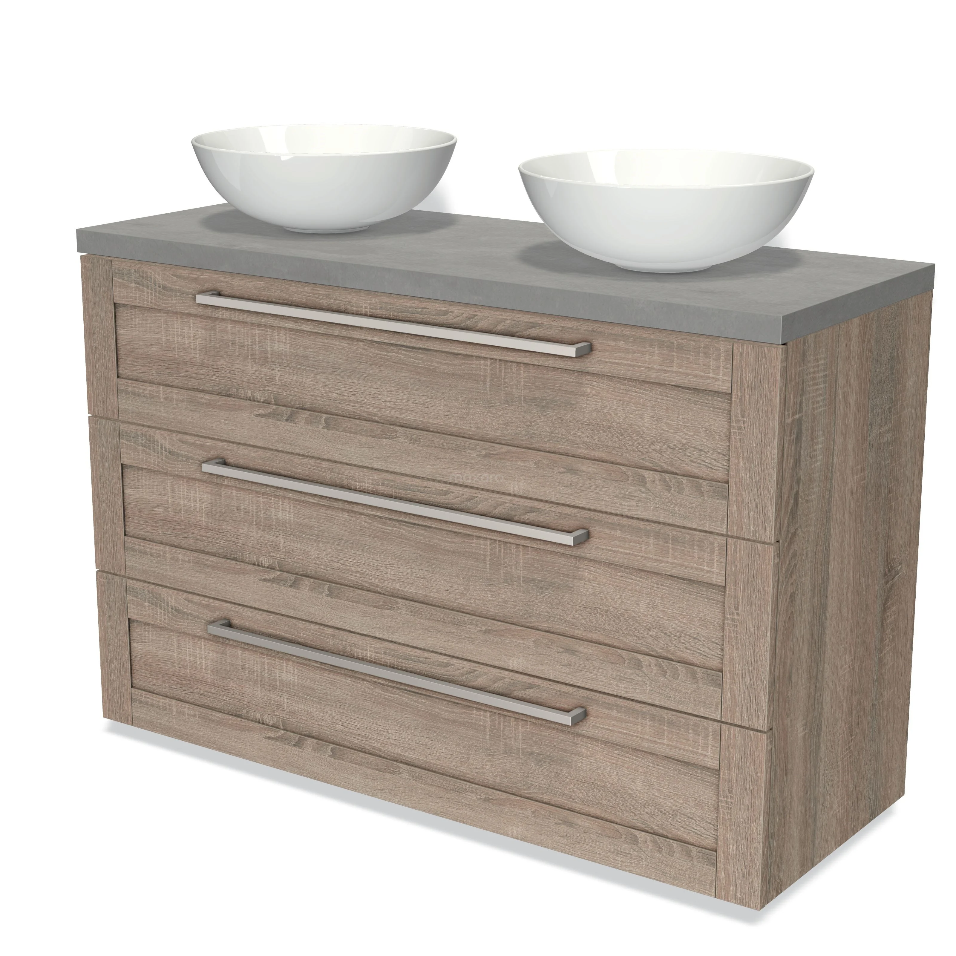 Modulo Plato Badmöbel mit Aufsatzwaschbecken | 120 cm Eiche Rahmen front Hellgrauer Beton blatt 3 Schubladen