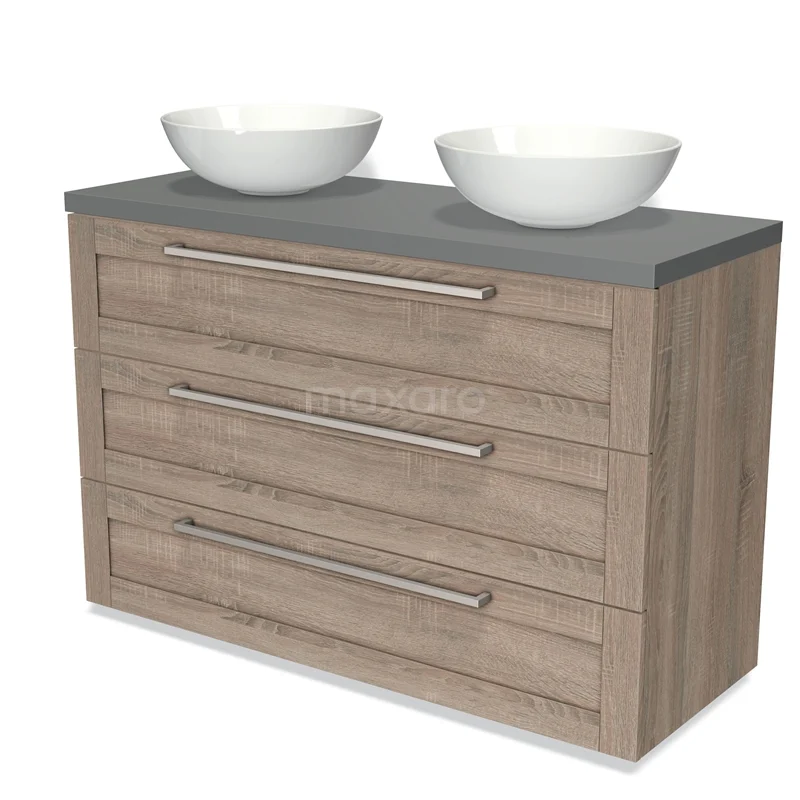 Modulo Plato Badmöbel mit Aufsatzwaschbecken | 120 cm Eiche Rahmen front Mittelgrau blatt 3 Schubladen