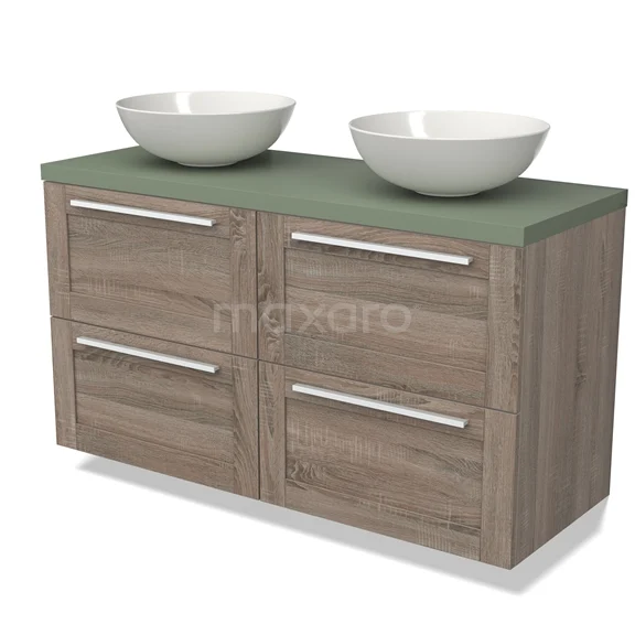Modulo Plato Badmöbel mit Aufsatzwaschbecken | 120 cm Eiche Rahmen front Salbeigrün blatt 4 Schubladen