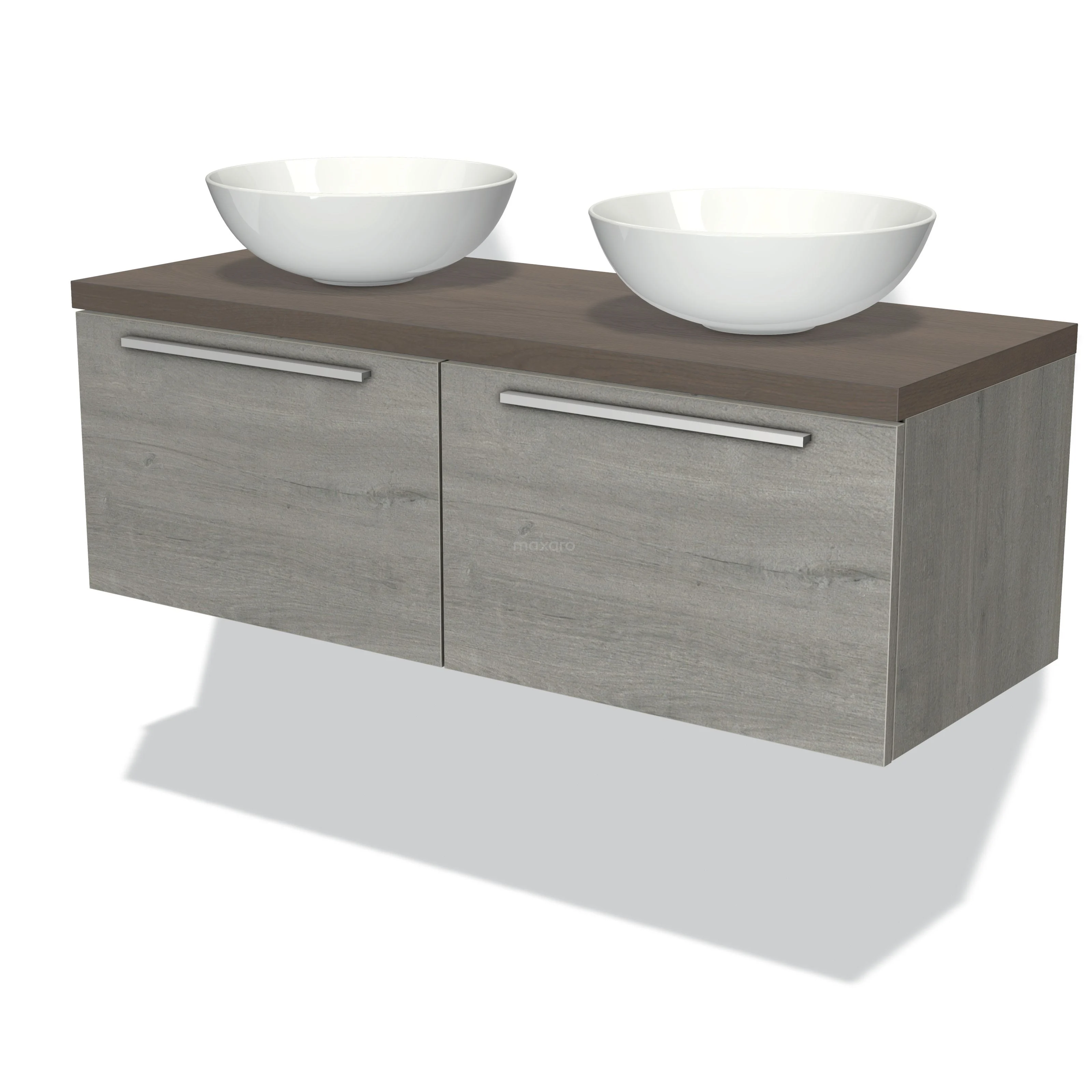 Modulo Plato Badmöbel mit Aufsatzwaschbecken | 120 cm Graue Eiche Flach front Dunkelbraune Eiche blatt 2 nebeneinanderliegende Schubladen
