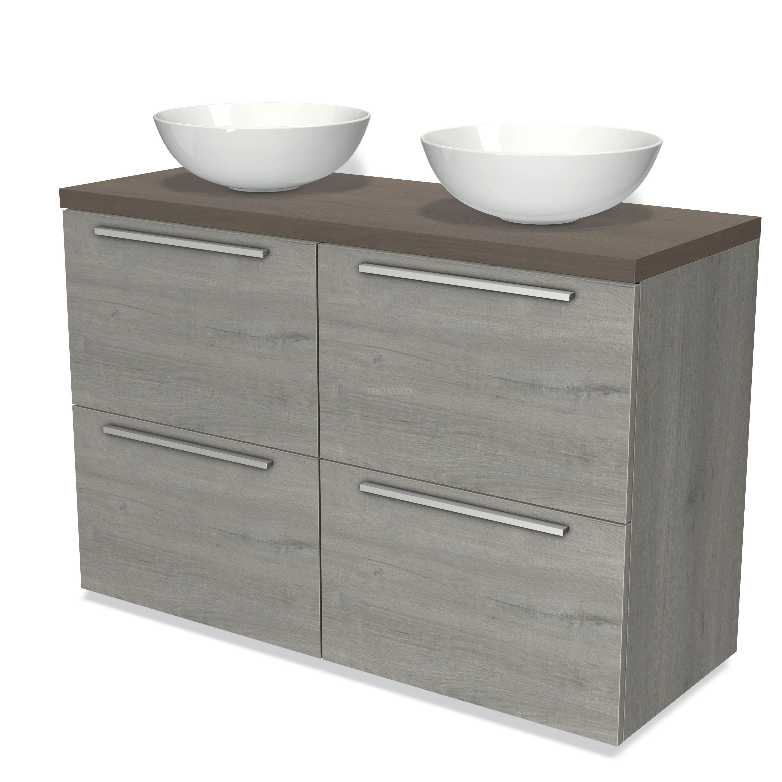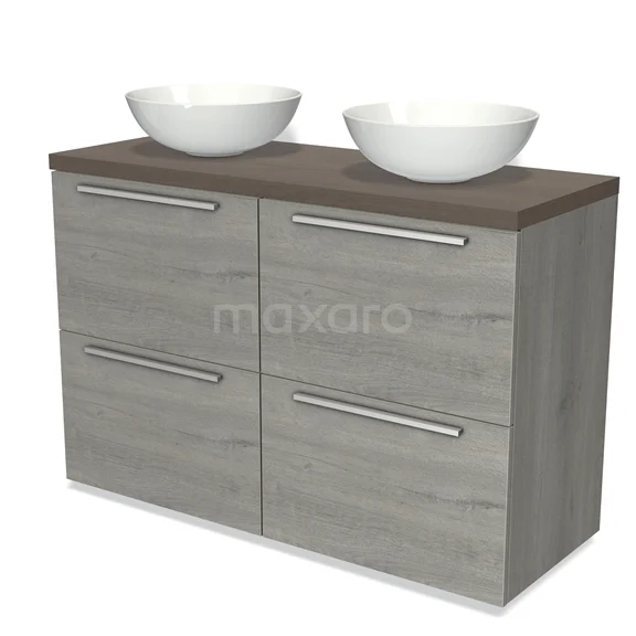 Modulo Plato Badmöbel mit Aufsatzwaschbecken | 120 cm Graue Eiche Flach front Dunkelbraune Eiche blatt 4 hohe Schubladen