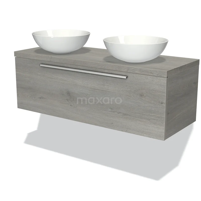 Modulo Plato Badmöbel mit Aufsatzwaschbecken | 120 cm Graue Eiche Flach front Graue Eiche blatt 1 Schublade
