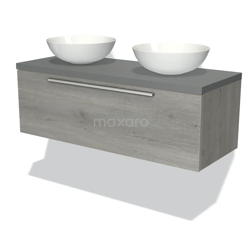 Modulo Plato Badmöbel mit Aufsatzwaschbecken | 120 cm Graue Eiche Flach front Mittelgrau blatt 1 Schublade