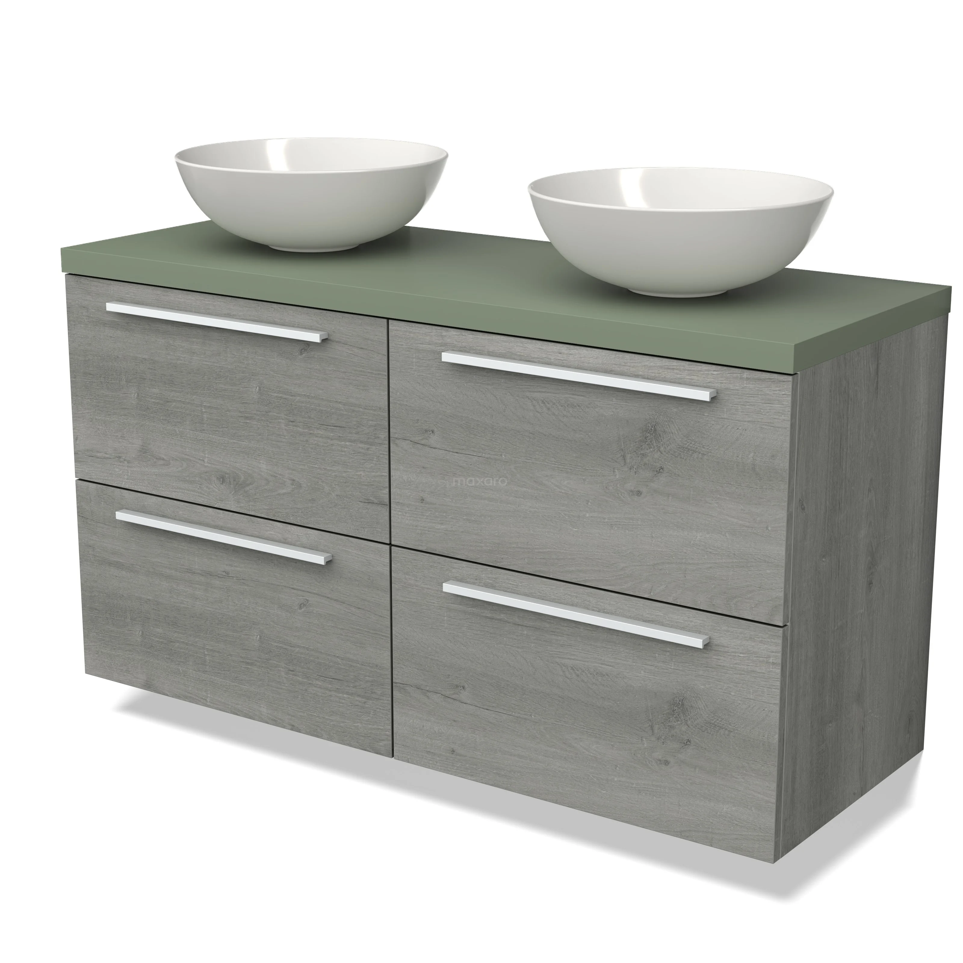 Modulo Plato Badmöbel mit Aufsatzwaschbecken | 120 cm Graue Eiche Flach front Salbeigrün blatt 4 Schubladen