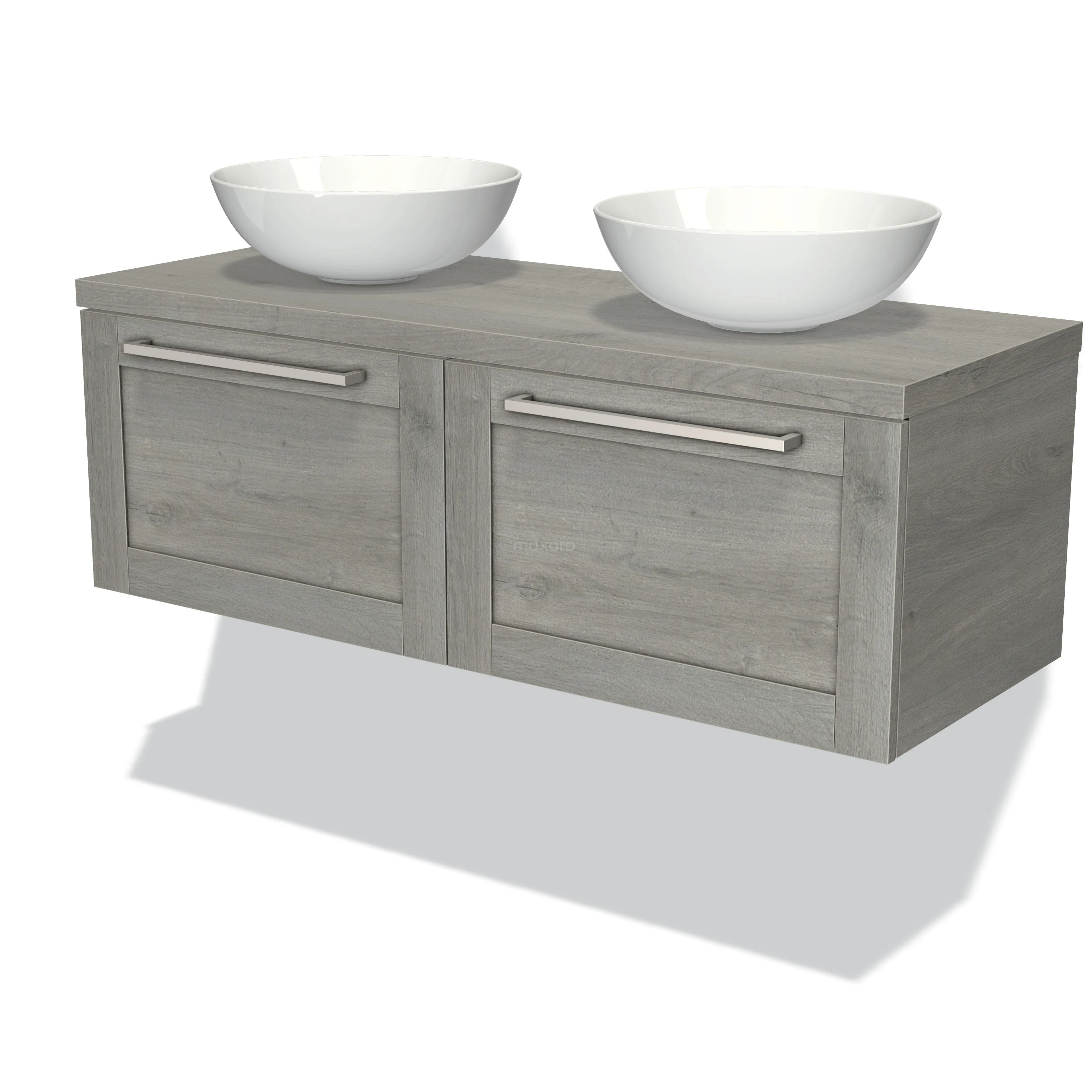 Modulo Plato Badmöbel mit Aufsatzwaschbecken | 120 cm Graue Eiche Rahmen front Graue Eiche blatt 2 nebeneinanderliegende Schubladen