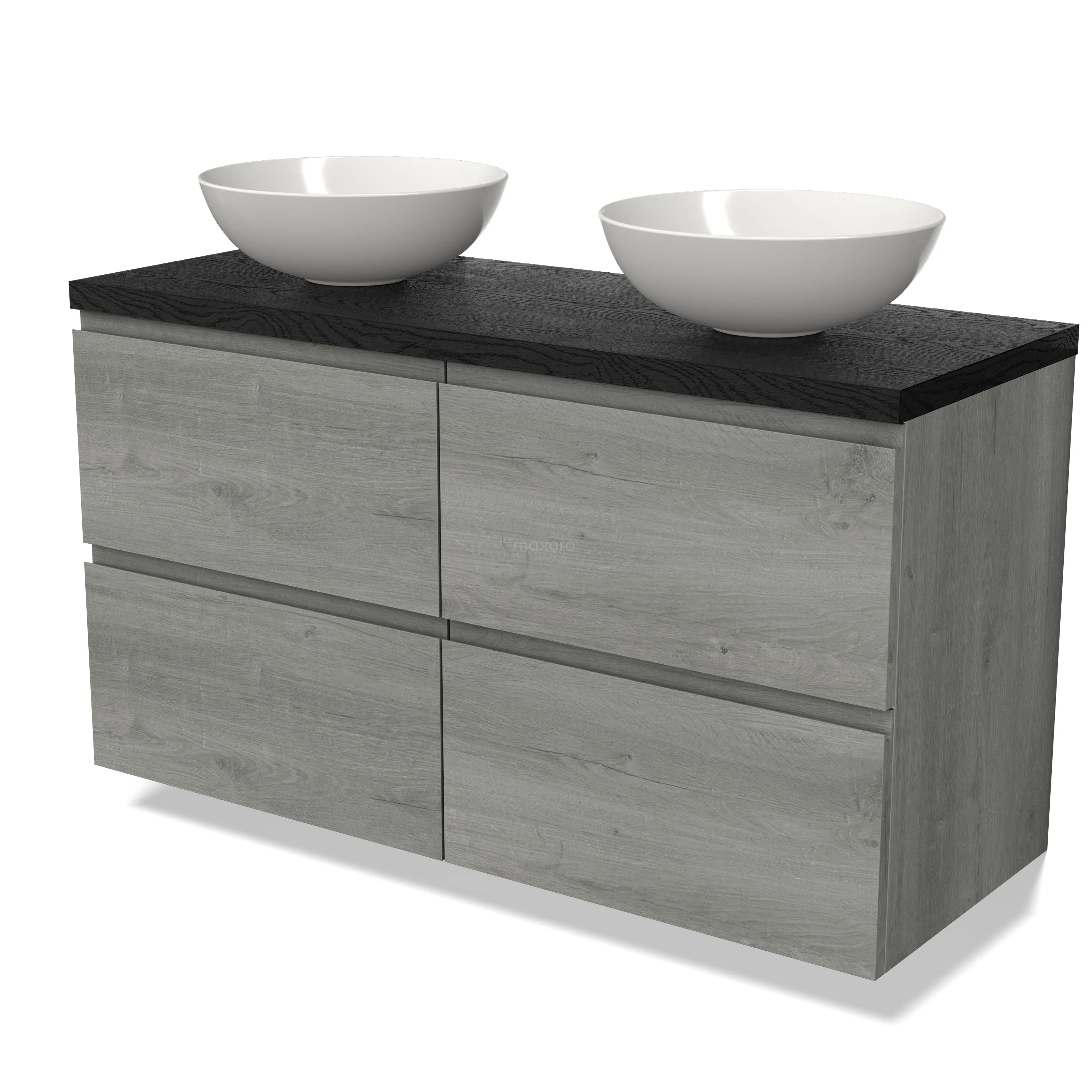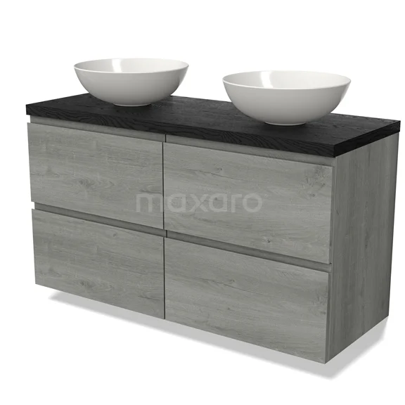 Modulo Plato Badmöbel mit Aufsatzwaschbecken | 120 cm Graue Eiche Rahmen front Schwarze Eiche blatt 4 Schubladen
