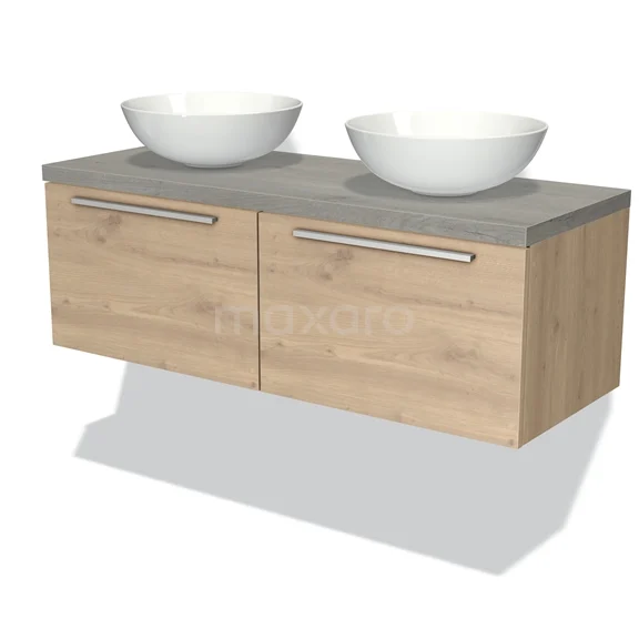 Modulo Plato Badmöbel mit Aufsatzwaschbecken | 120 cm Hellbraune Eiche Flach front Graue Eiche blatt 2 nebeneinanderliegende Schubladen
