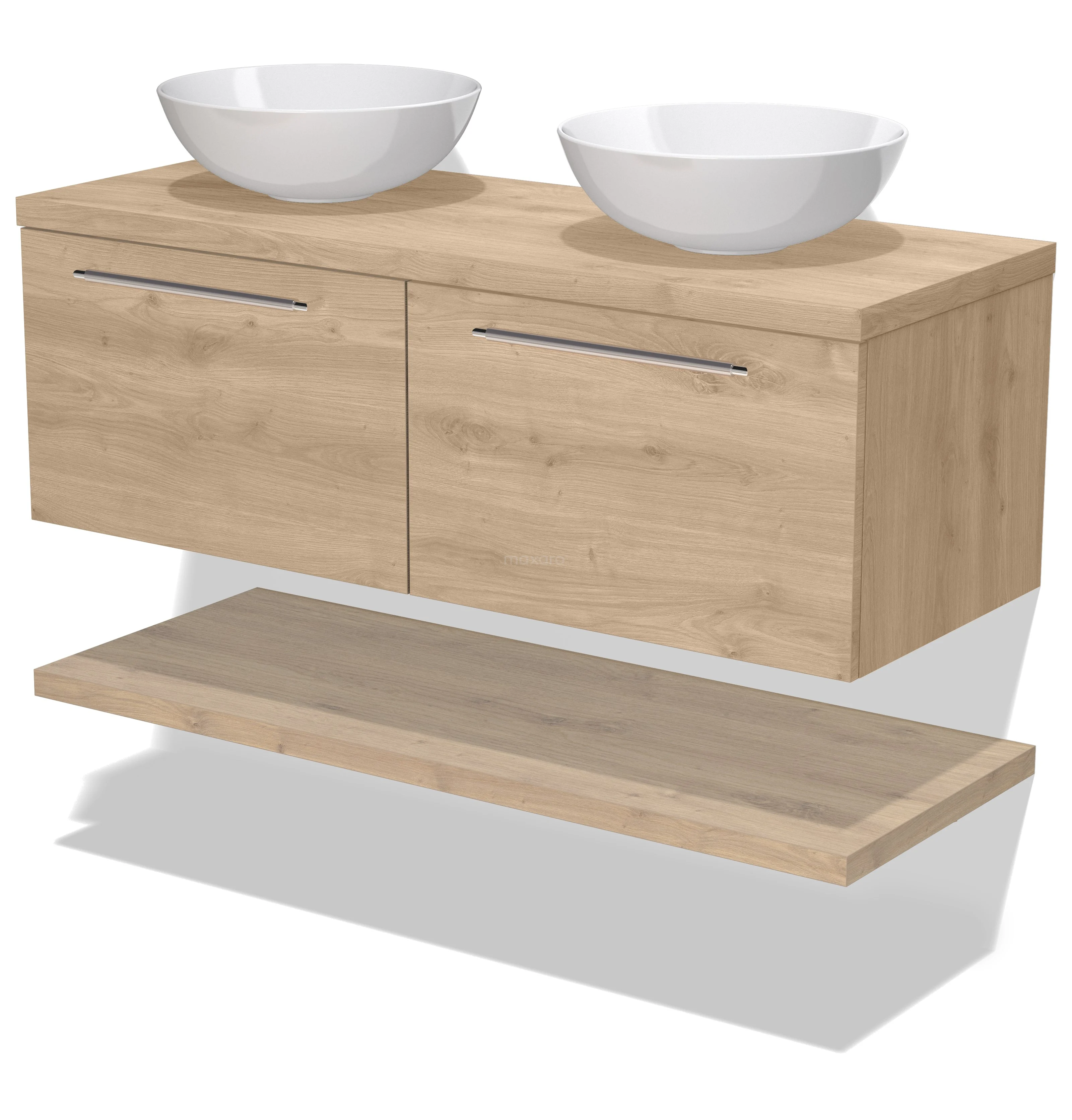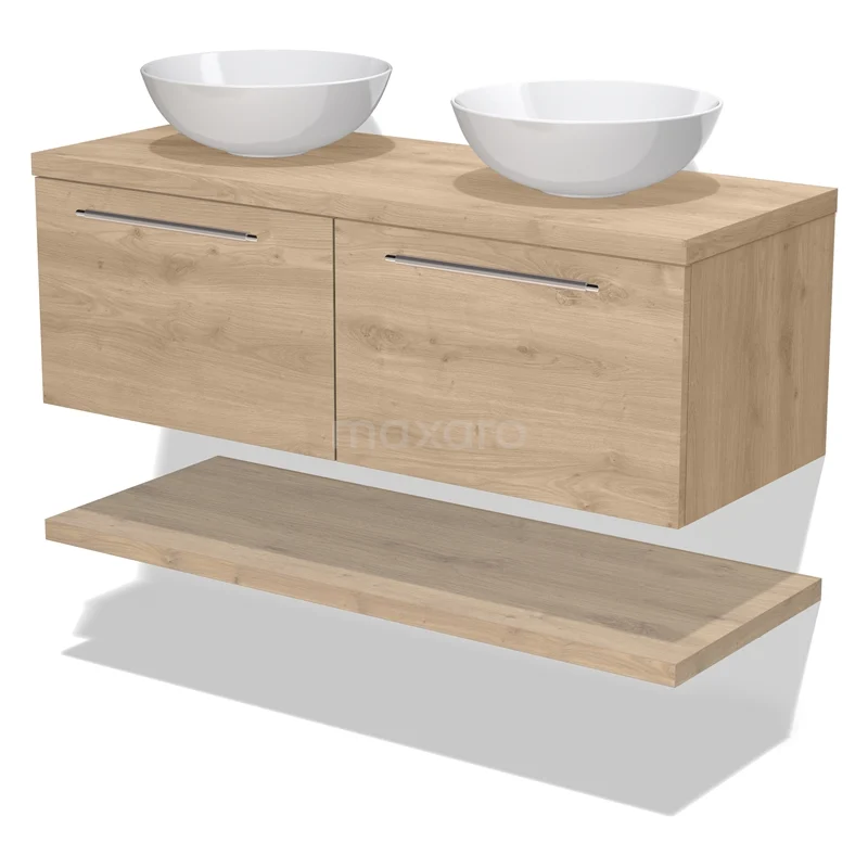 Modulo Plato Badmöbel mit Aufsatzwaschbecken | 120 cm Hellbraune Eiche Flach front Hellbraune Eiche blatt 2 nebeneinanderliegende Schubladen