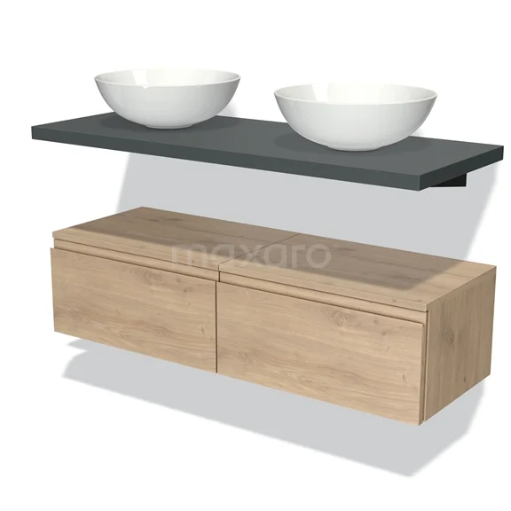 Modulo Plato Badmöbel mit Aufsatzwaschbecken | 120 cm Hellbraune Eiche Grifflos front Dunkelgrau blatt Tief hängend