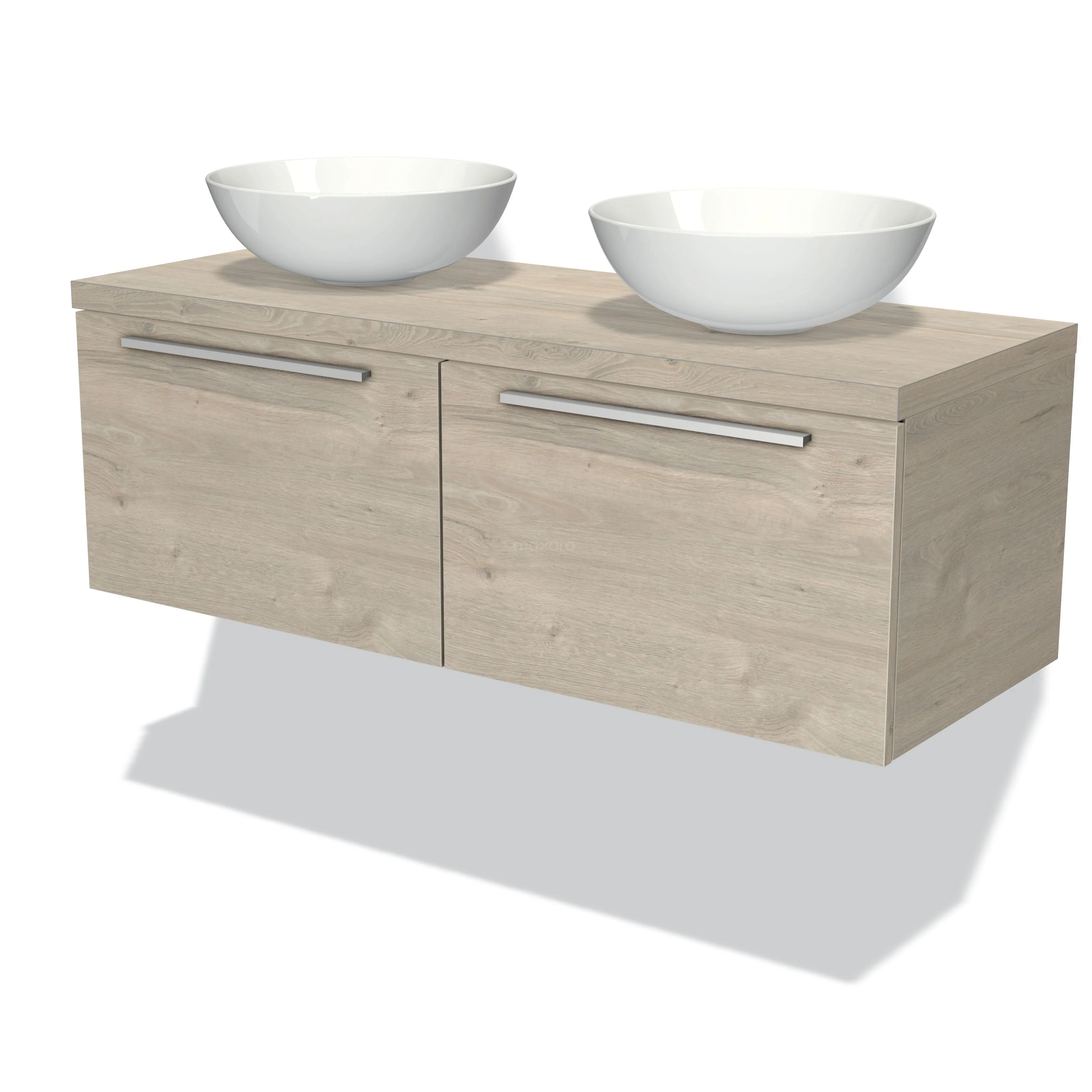 Modulo Plato Badmöbel mit Aufsatzwaschbecken | 120 cm Hellgraue Eiche Flach front Hellgraue Eiche blatt 2 nebeneinanderliegende Schubladen