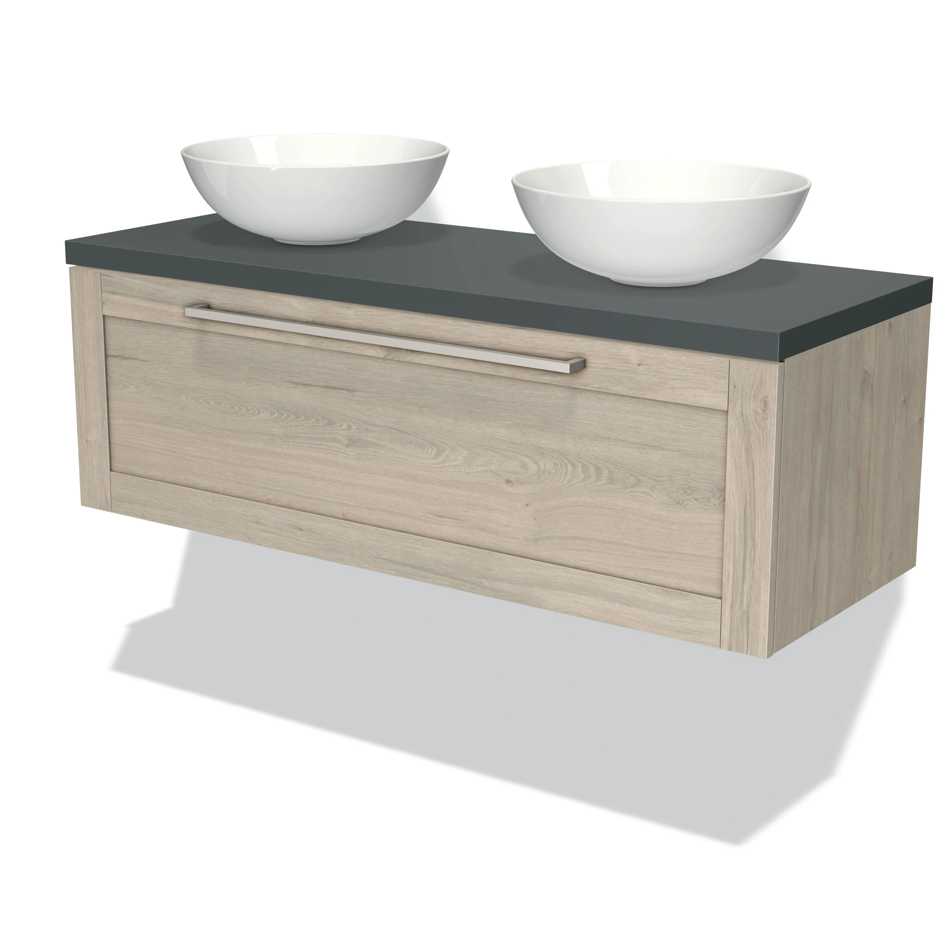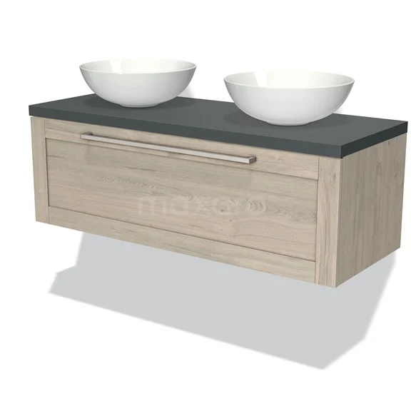 Modulo Plato Badmöbel mit Aufsatzwaschbecken | 120 cm Hellgraue Eiche Rahmen front Dunkelgrau blatt 1 Schublade