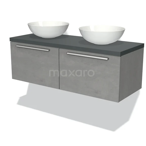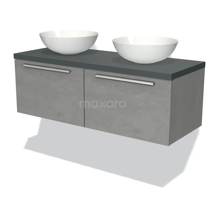 Modulo Plato Badmöbel mit Aufsatzwaschbecken | 120 cm Hellgrauer Beton Flach front Dunkelgrau blatt 2 nebeneinanderliegende Schubladen