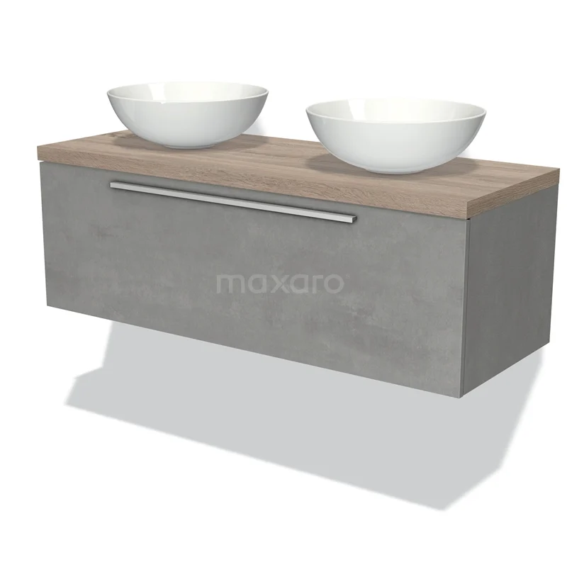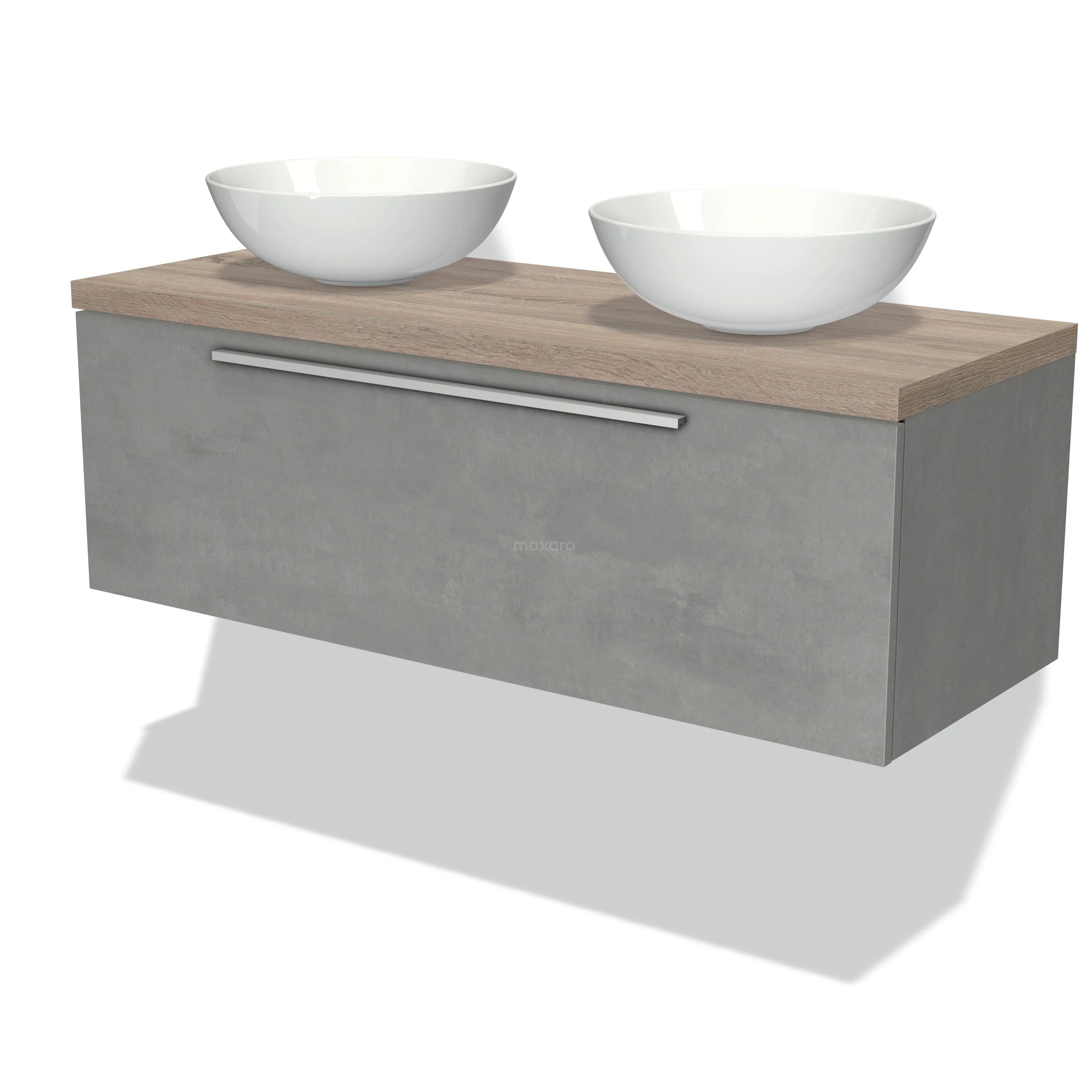 Modulo Plato Badmöbel mit Aufsatzwaschbecken | 120 cm Hellgrauer Beton Flach front Eiche blatt 1 Schublade