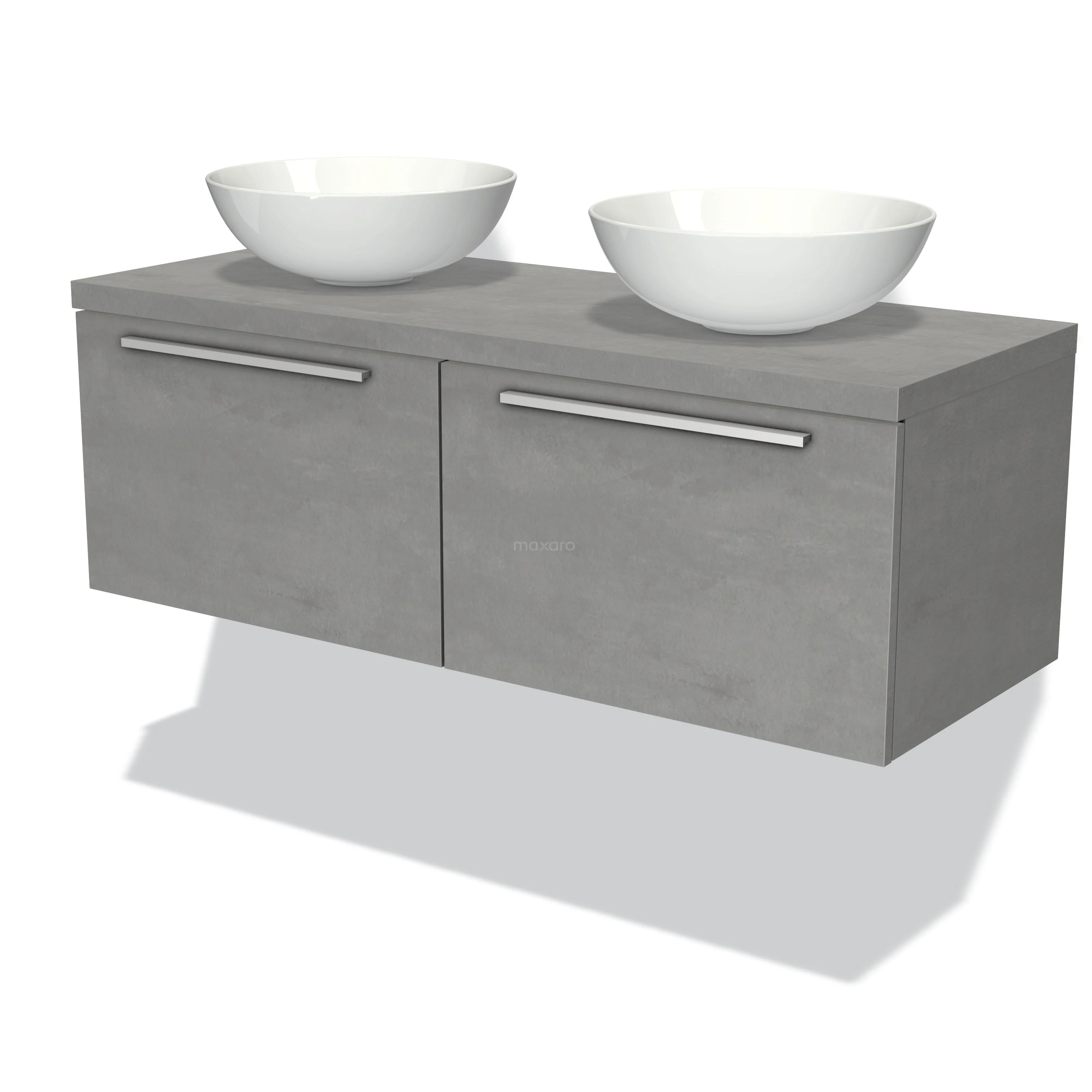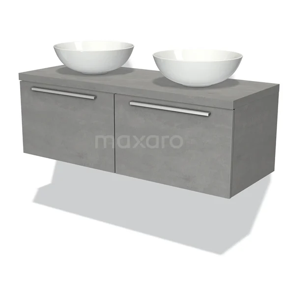 Modulo Plato Badmöbel mit Aufsatzwaschbecken | 120 cm Hellgrauer Beton Flach front Hellgrauer Beton blatt 2 nebeneinanderliegende Schubladen