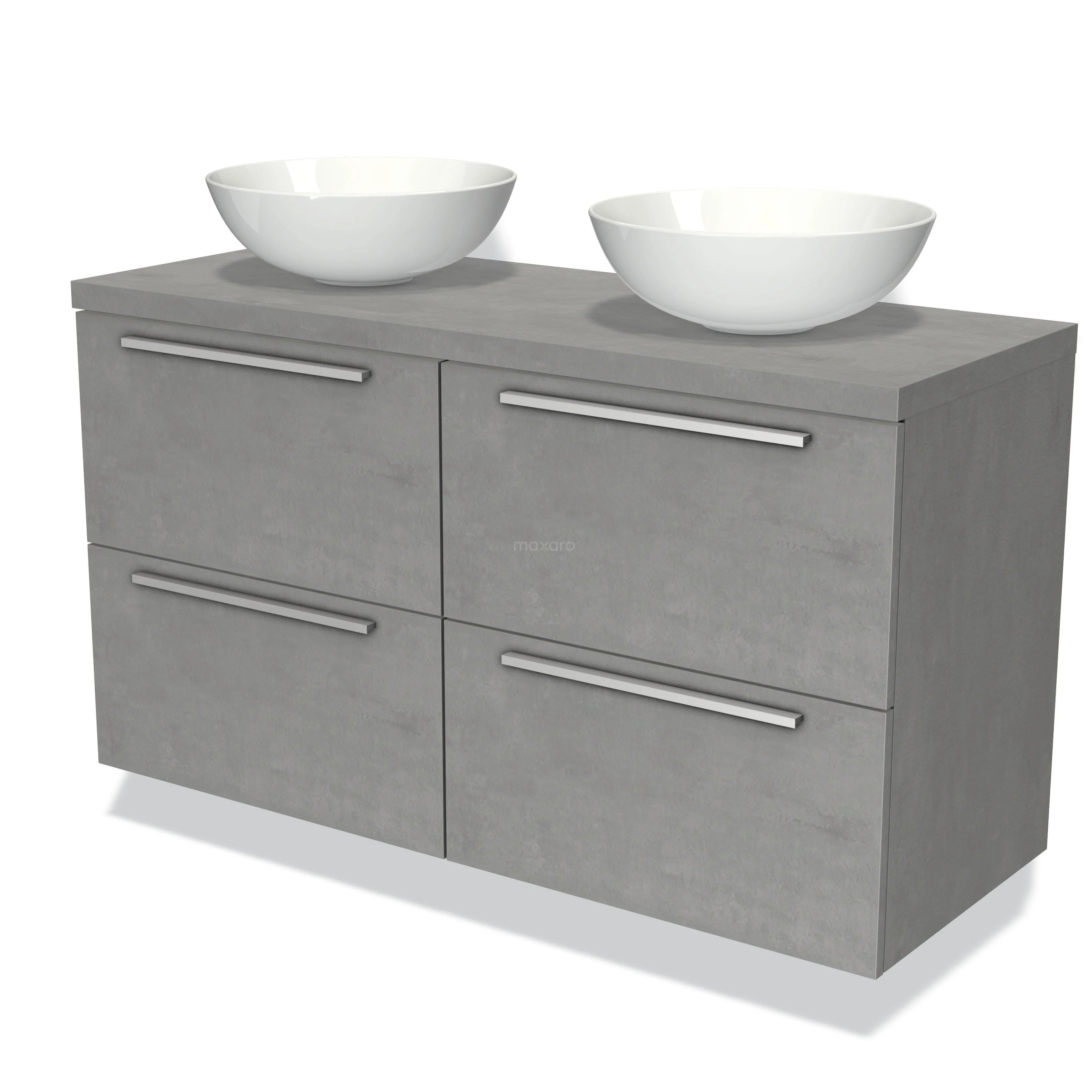 Modulo Plato Badmöbel mit Aufsatzwaschbecken | 120 cm Hellgrauer Beton Flach front Hellgrauer Beton blatt 4 Schubladen