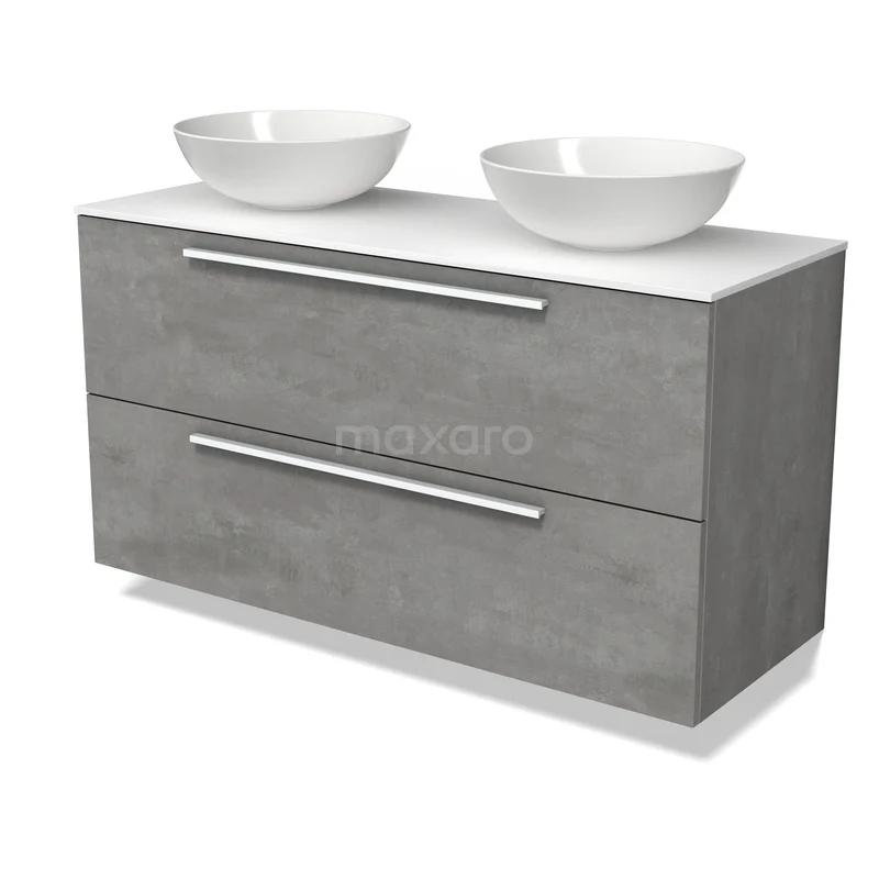 Modulo Plato Badmöbel mit Aufsatzwaschbecken | 120 cm Hellgrauer Beton Flach front Solid Surface blatt 2 übereinanderliegende Schubladen